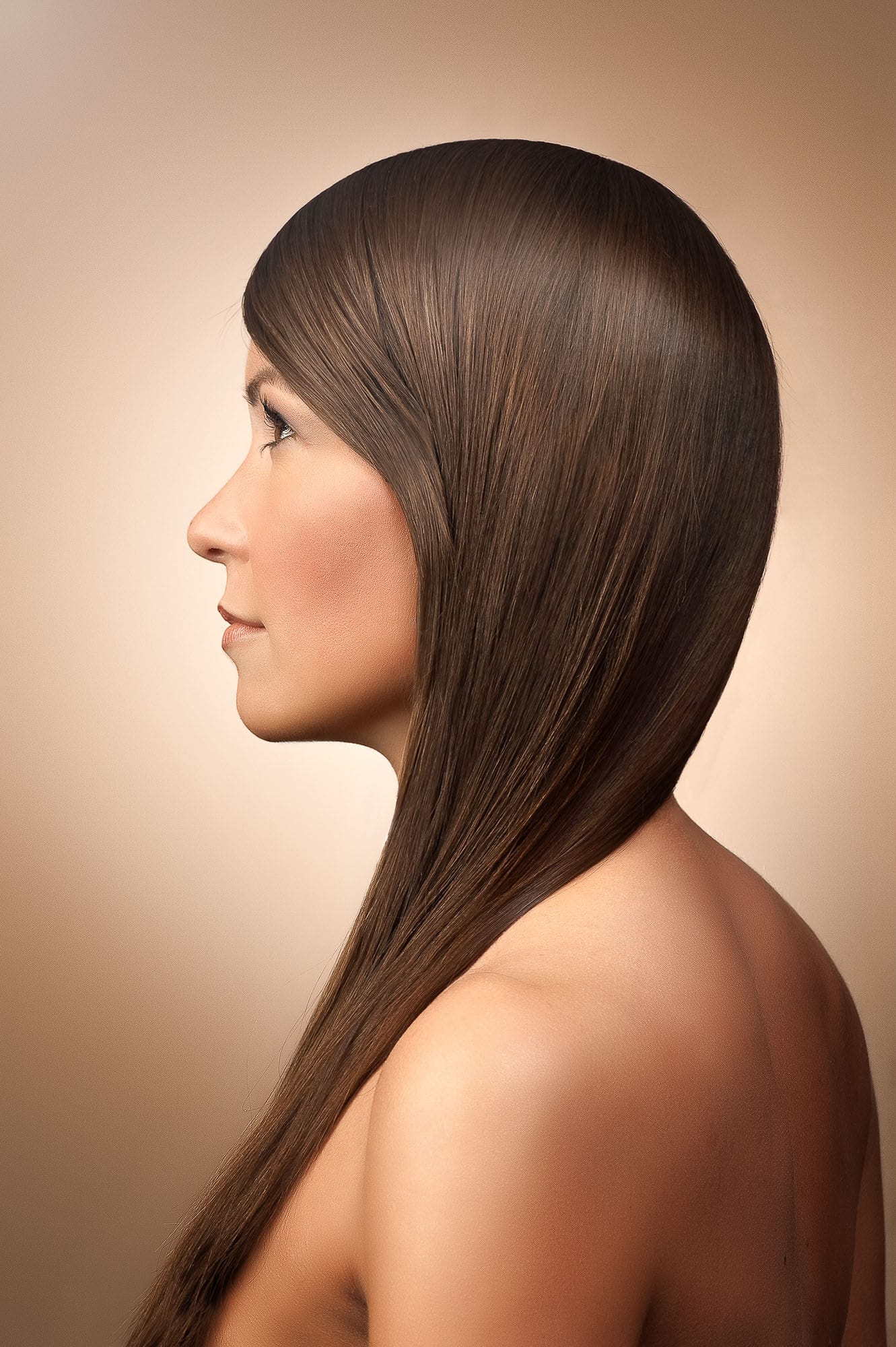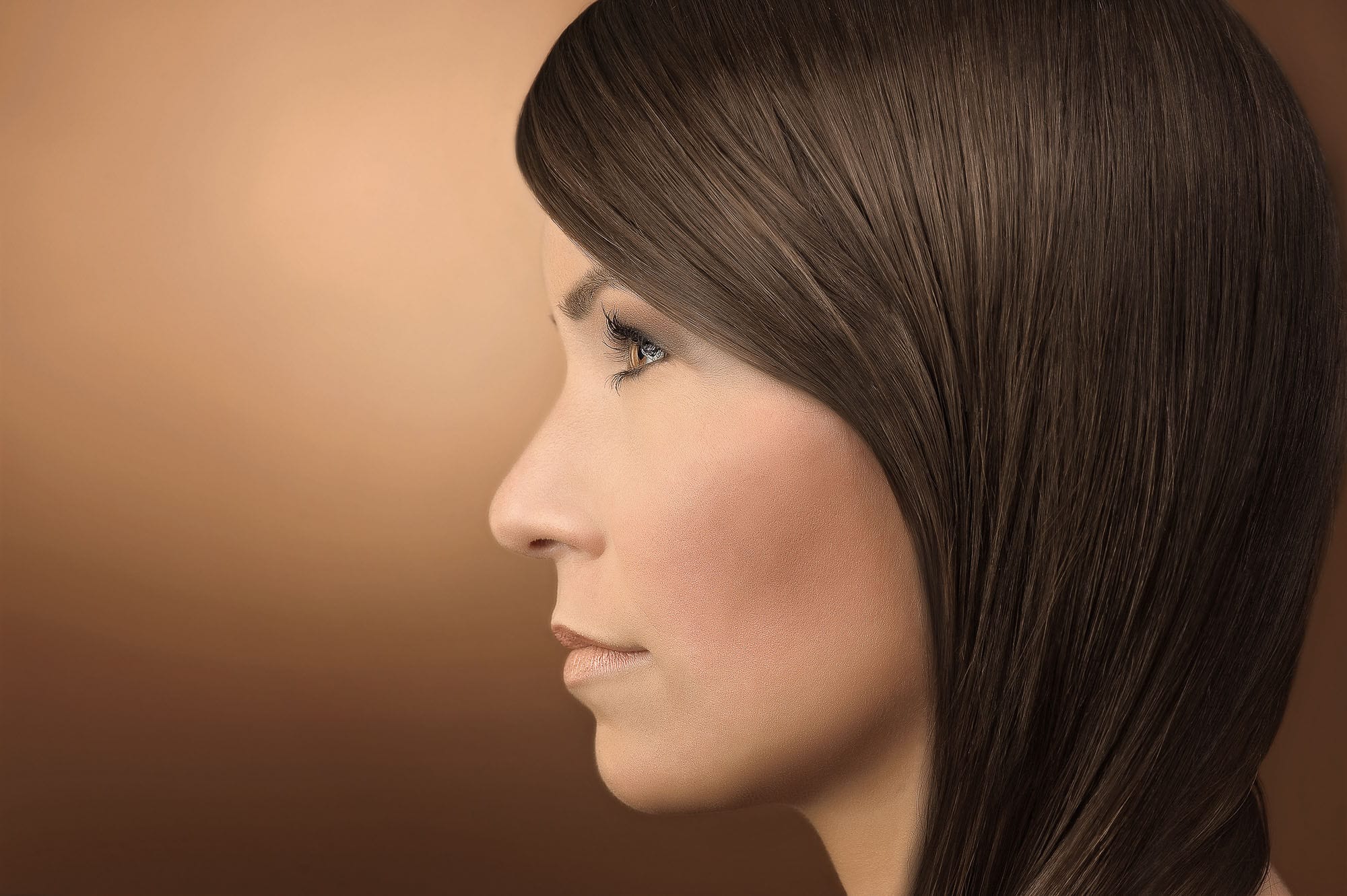 Profilansicht einer Frau mit glattem Haar.