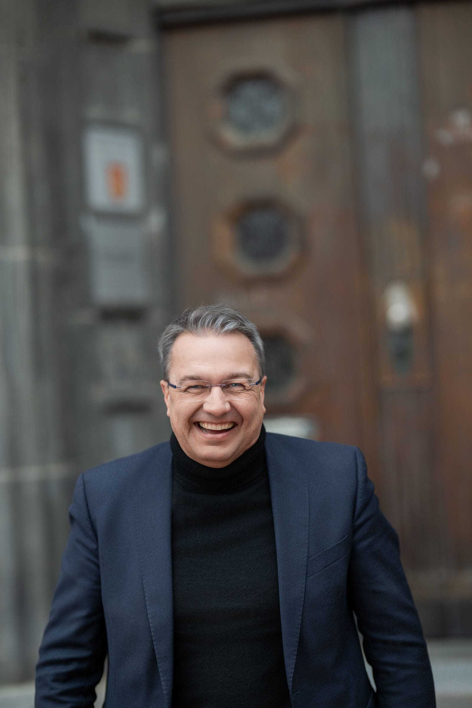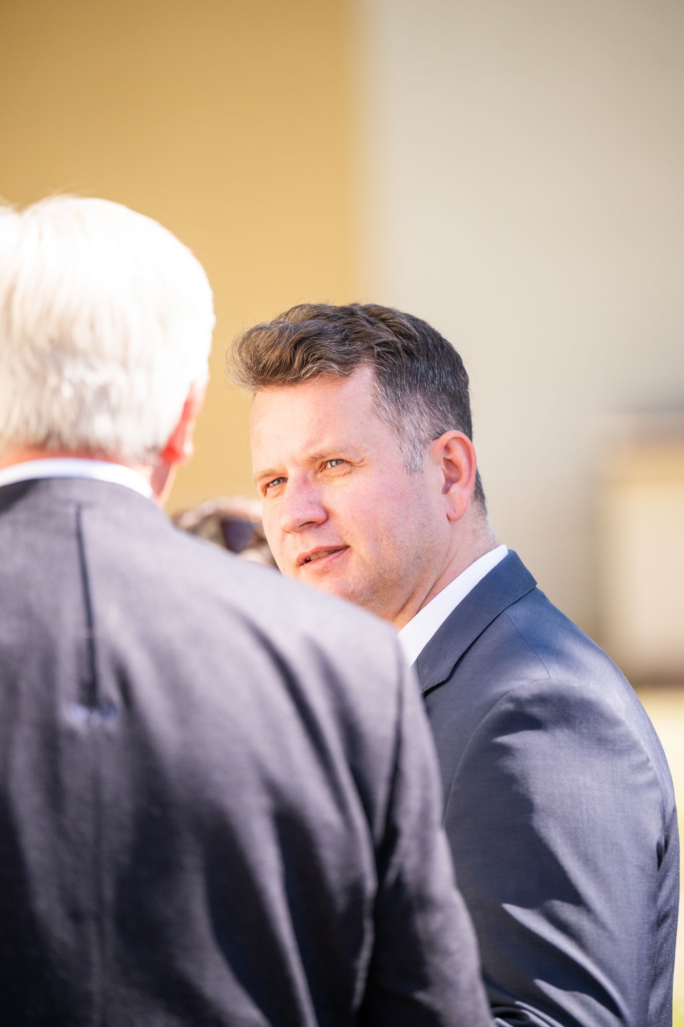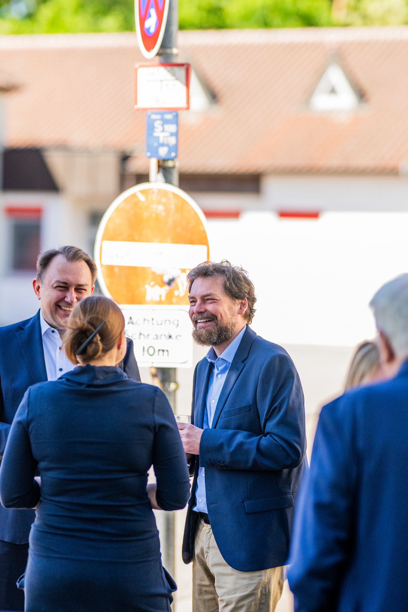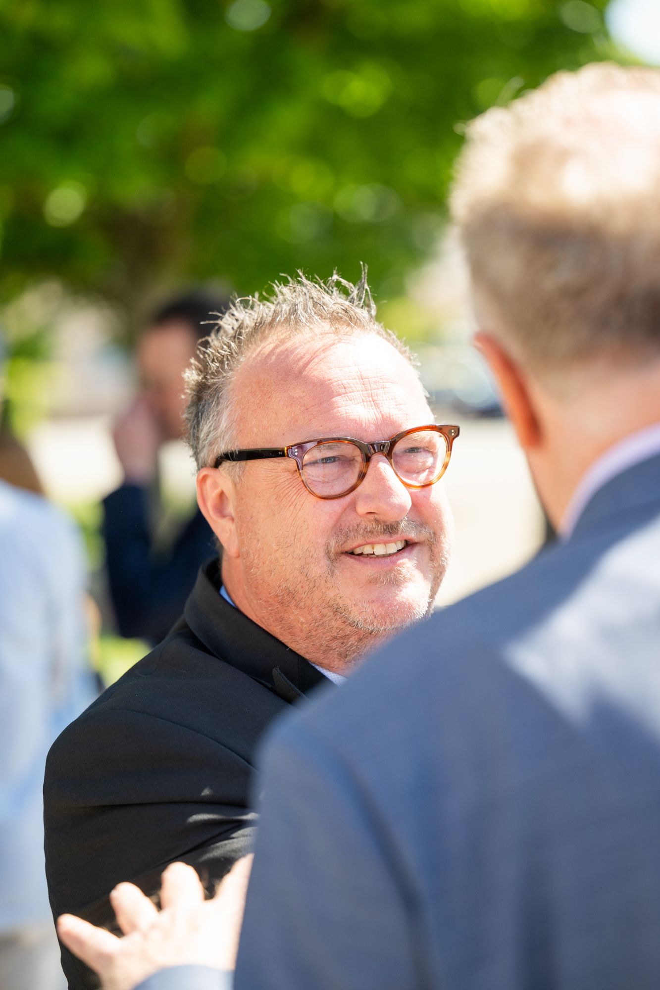 Mann im Anzug lächelnd draußen