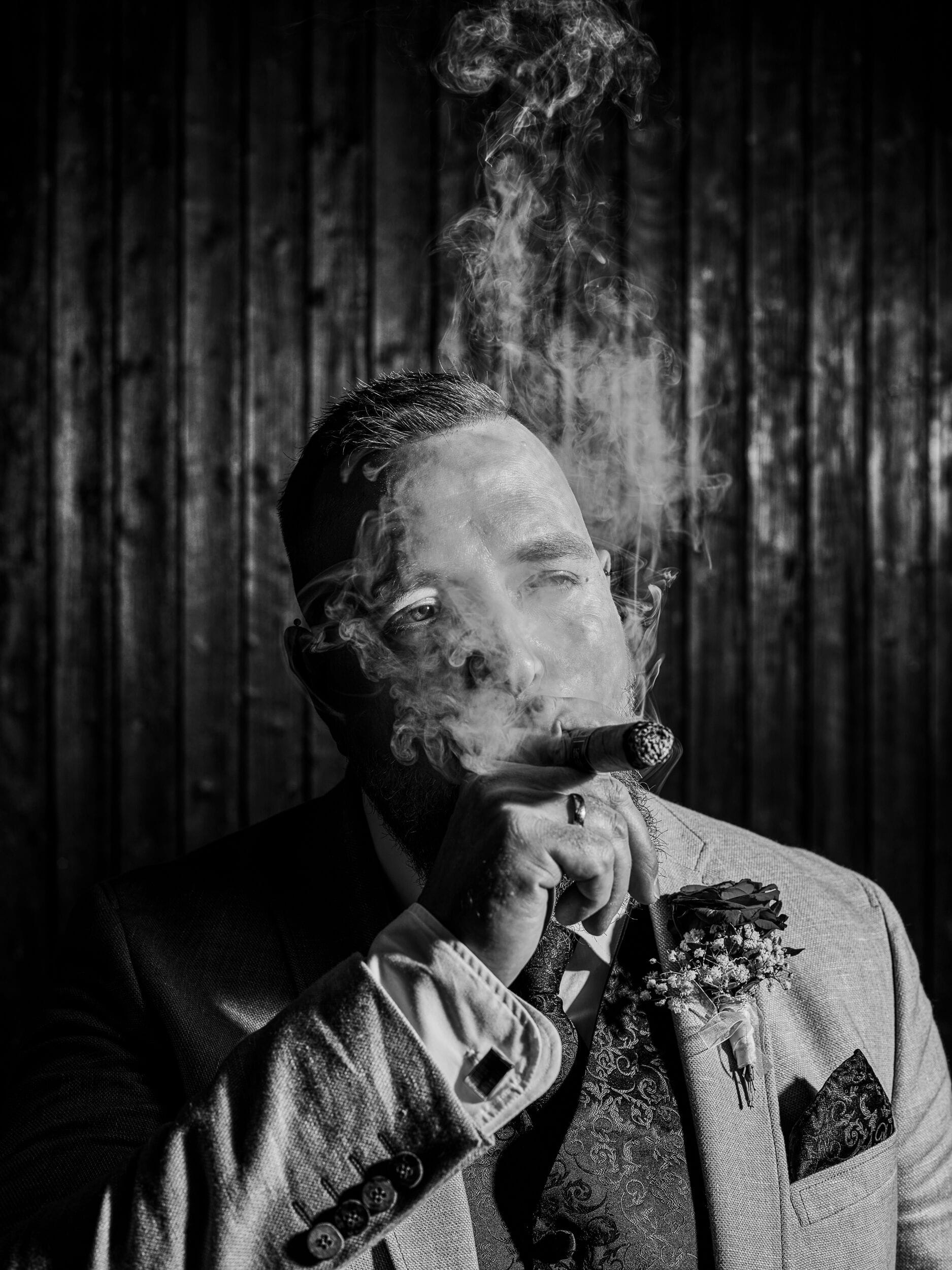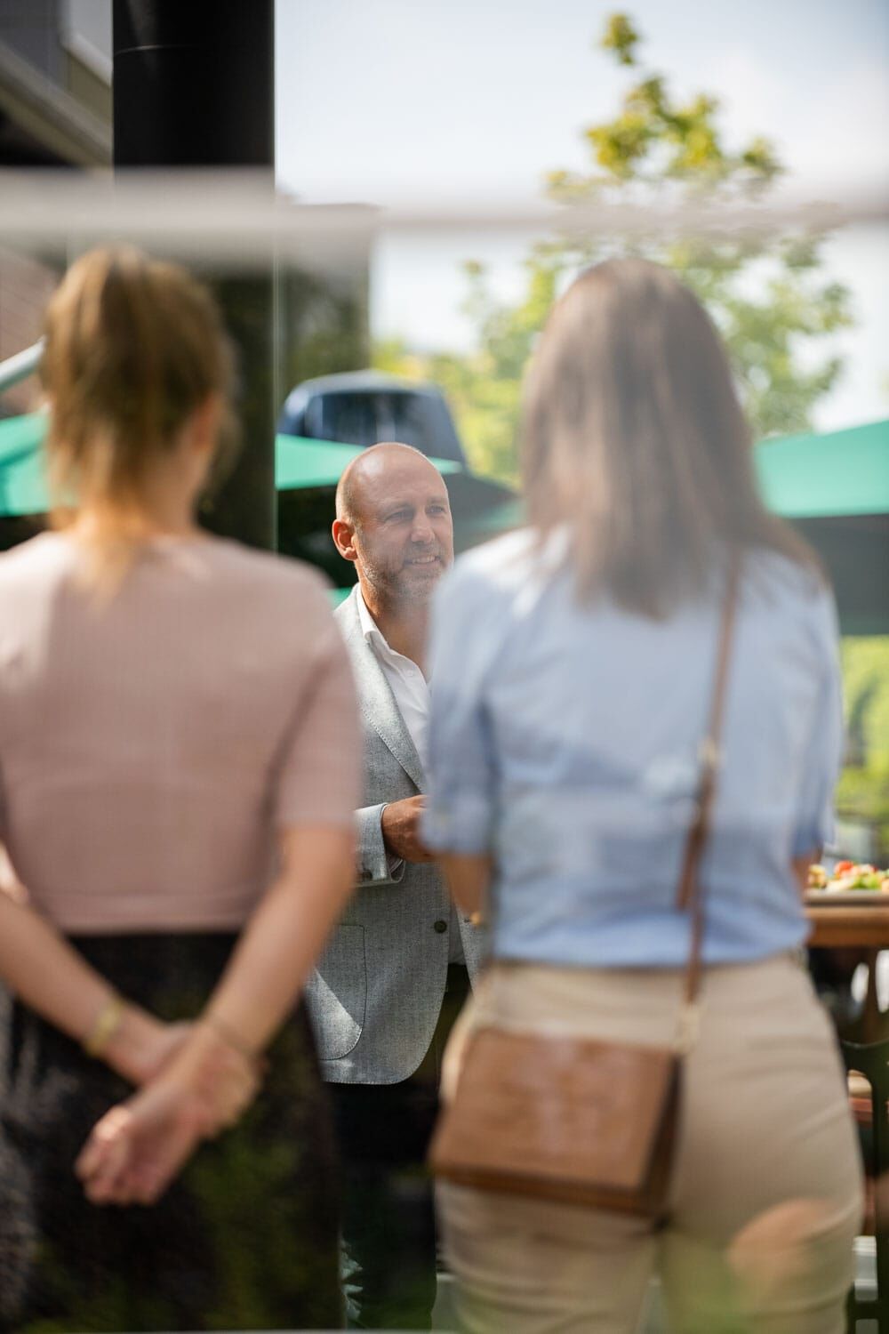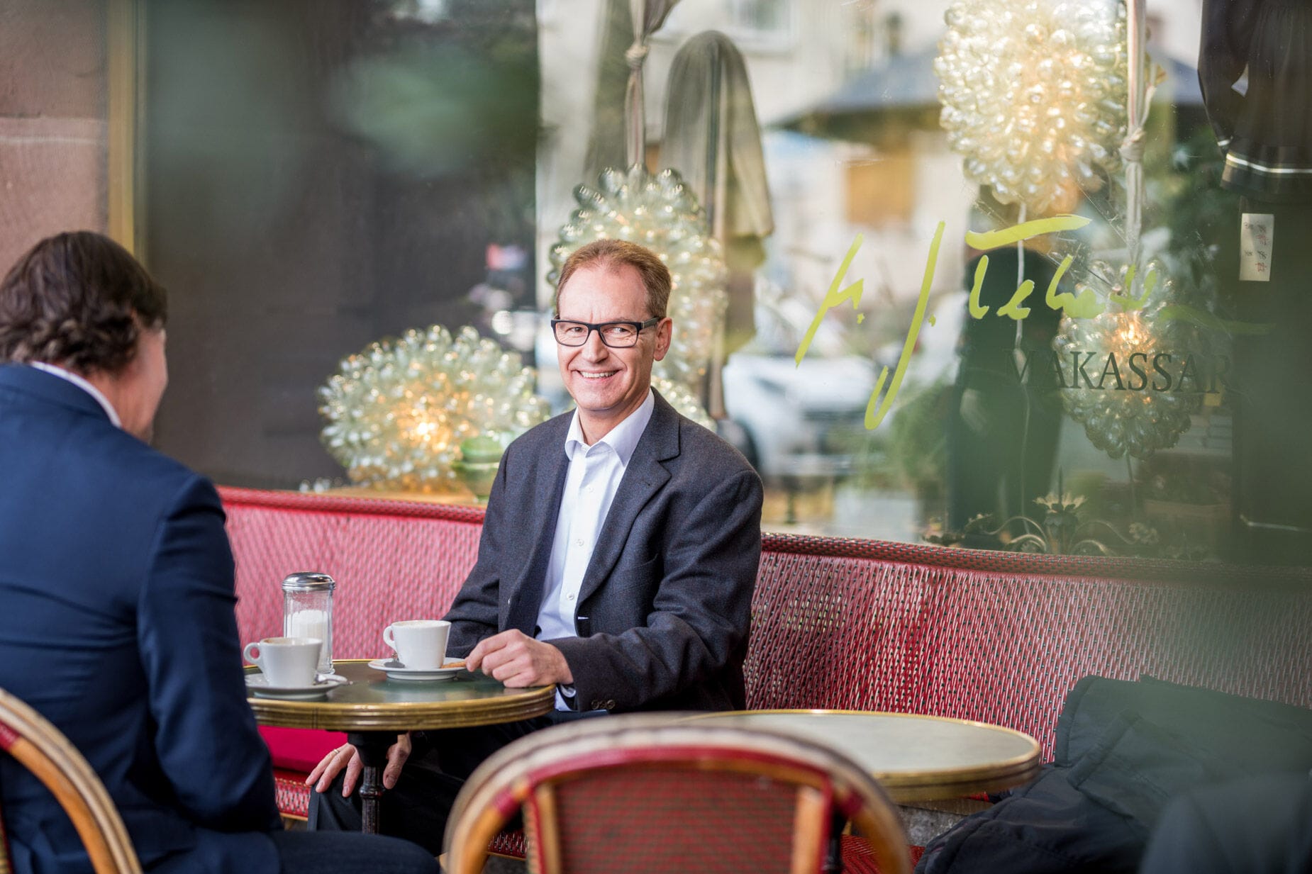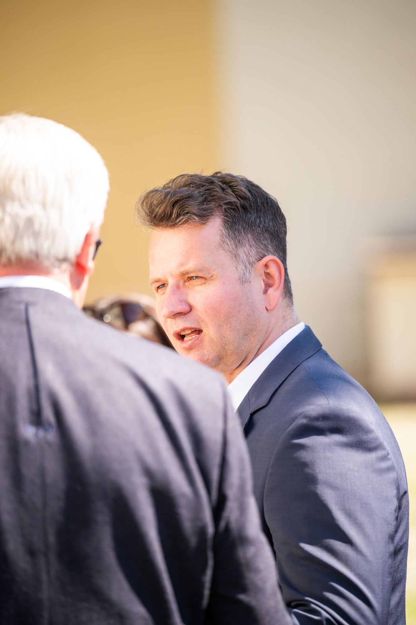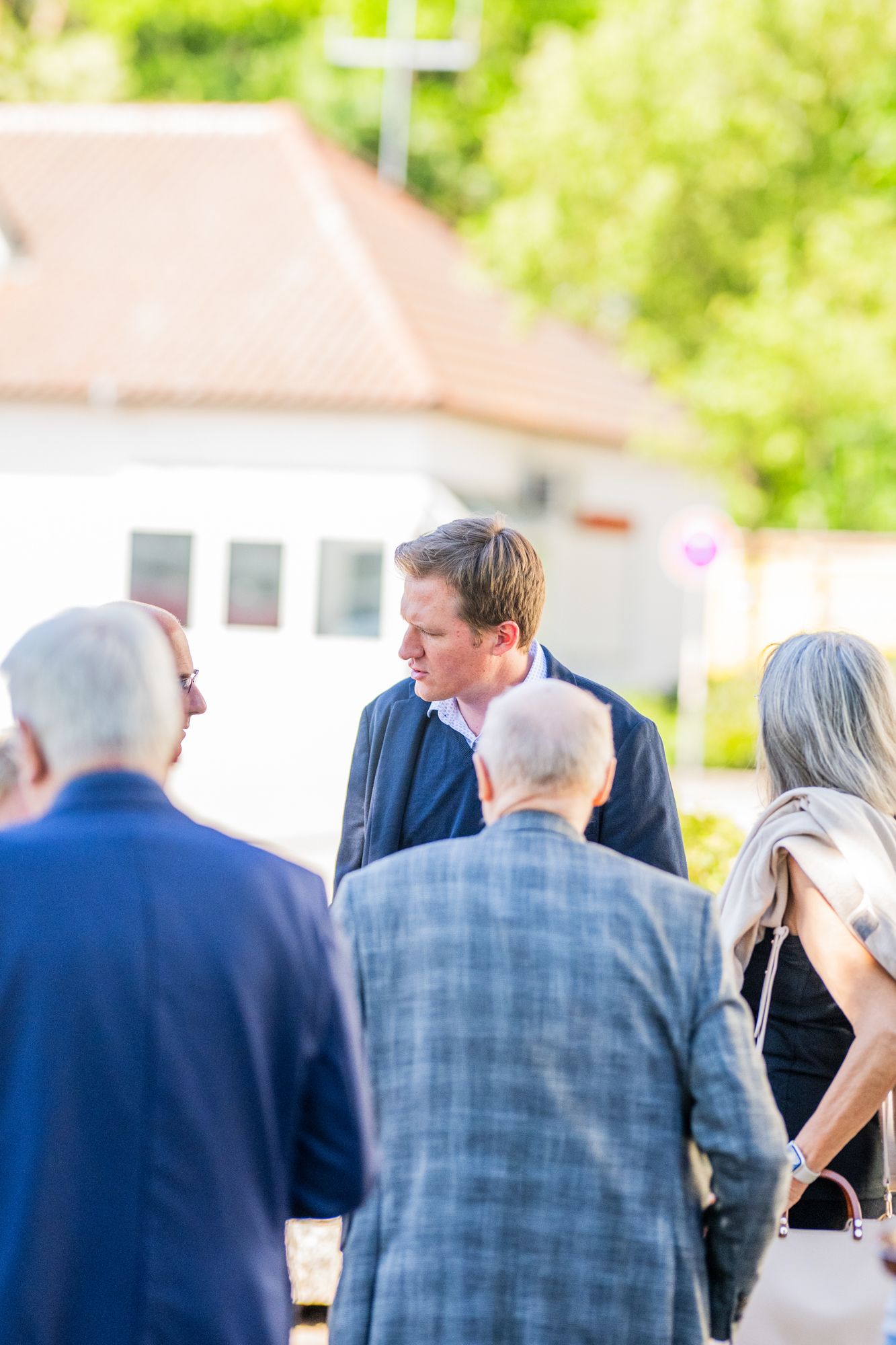 Mann im Anzug lächelnd draußen