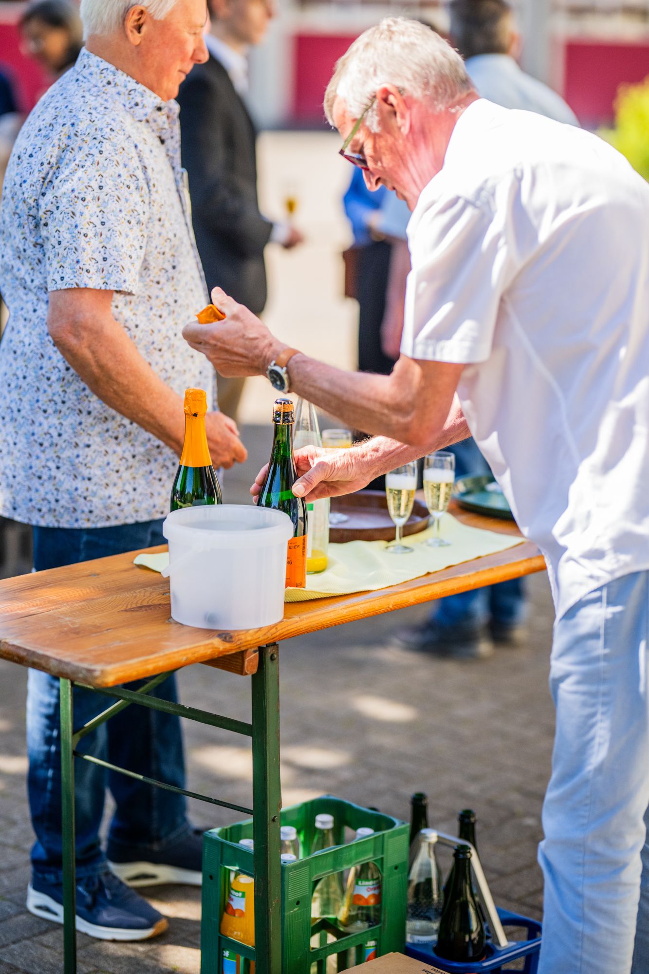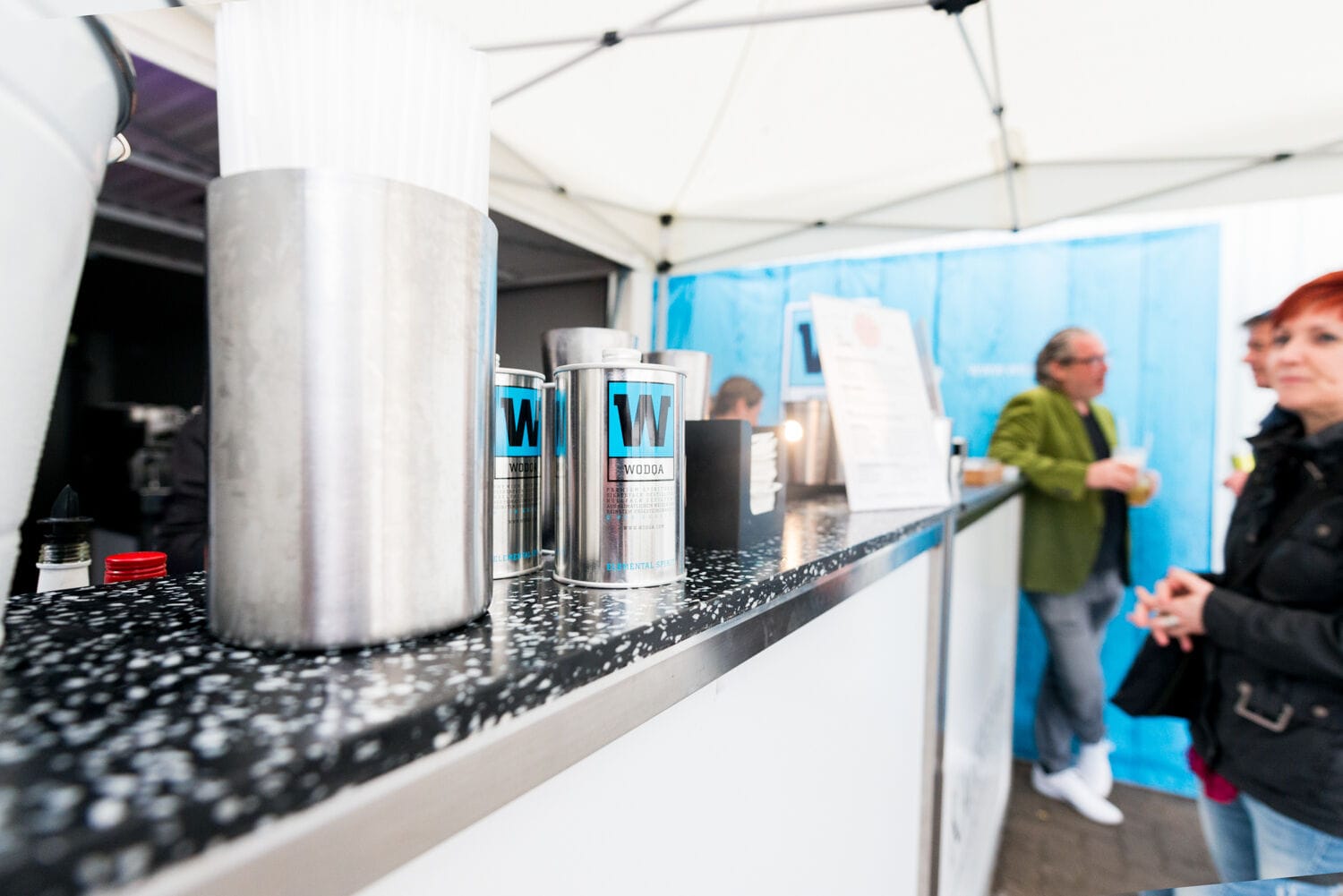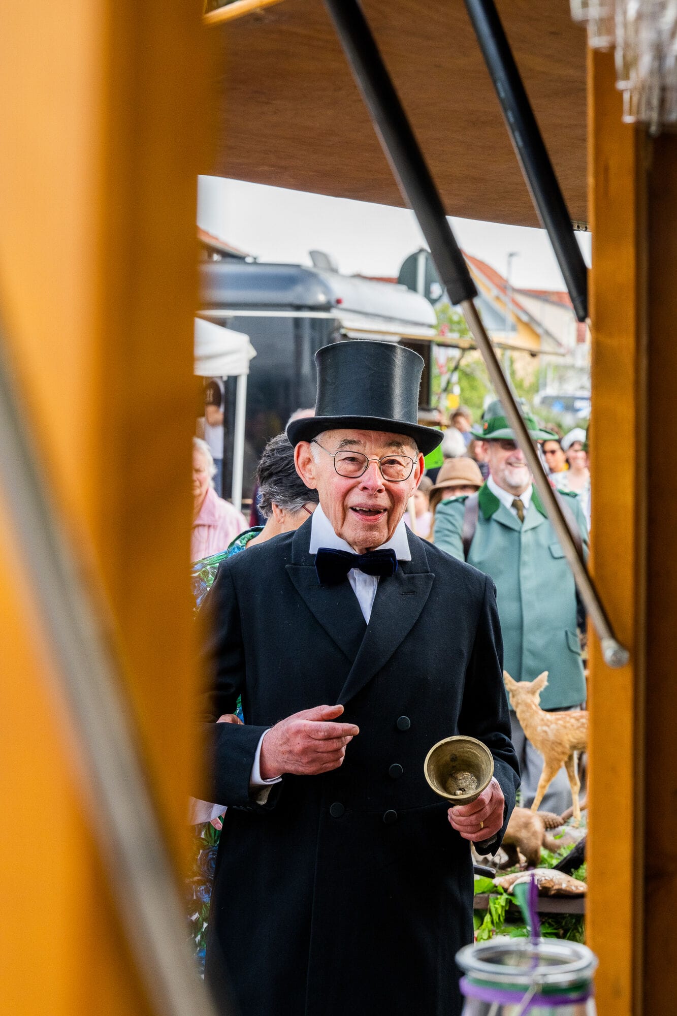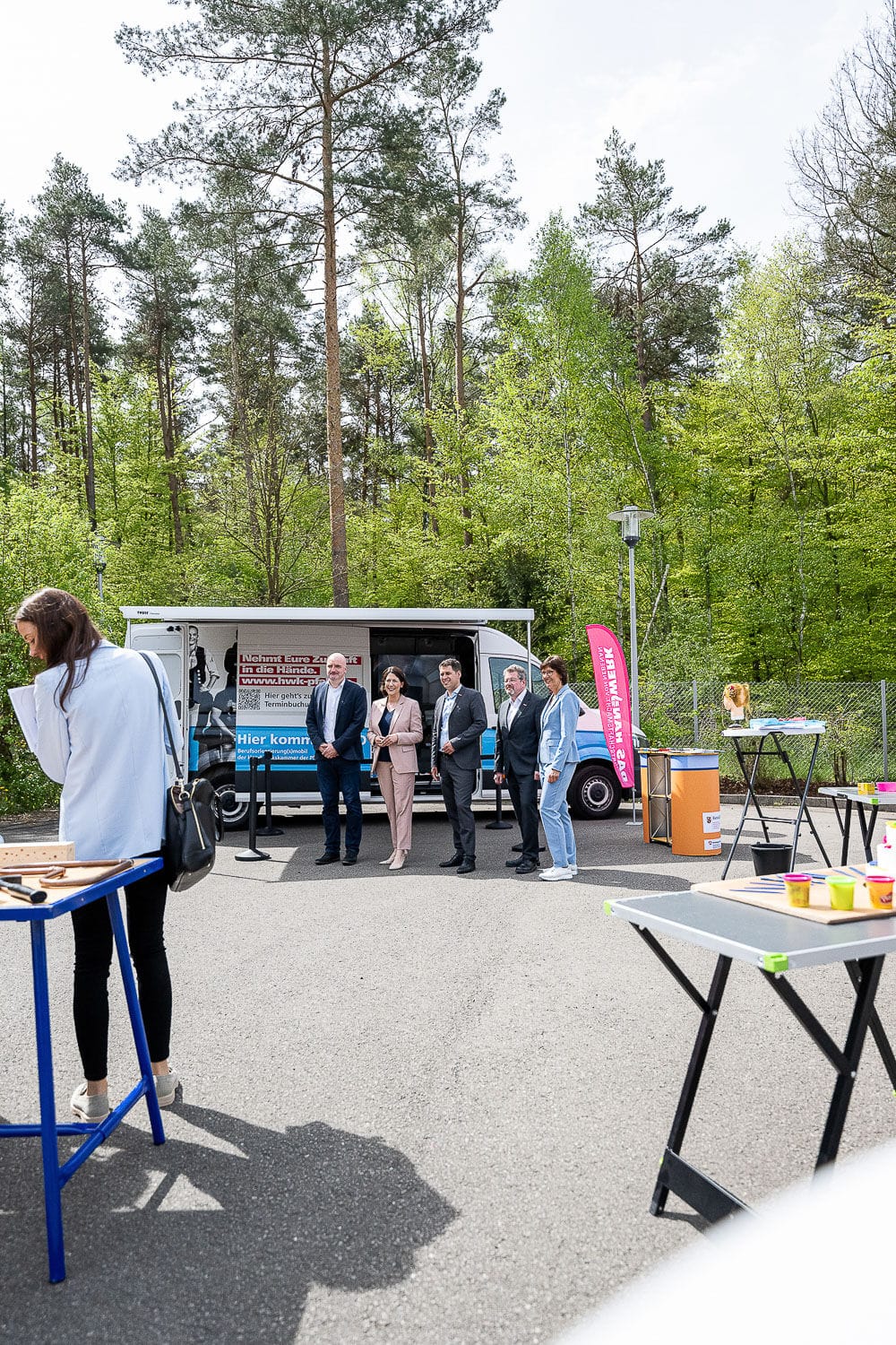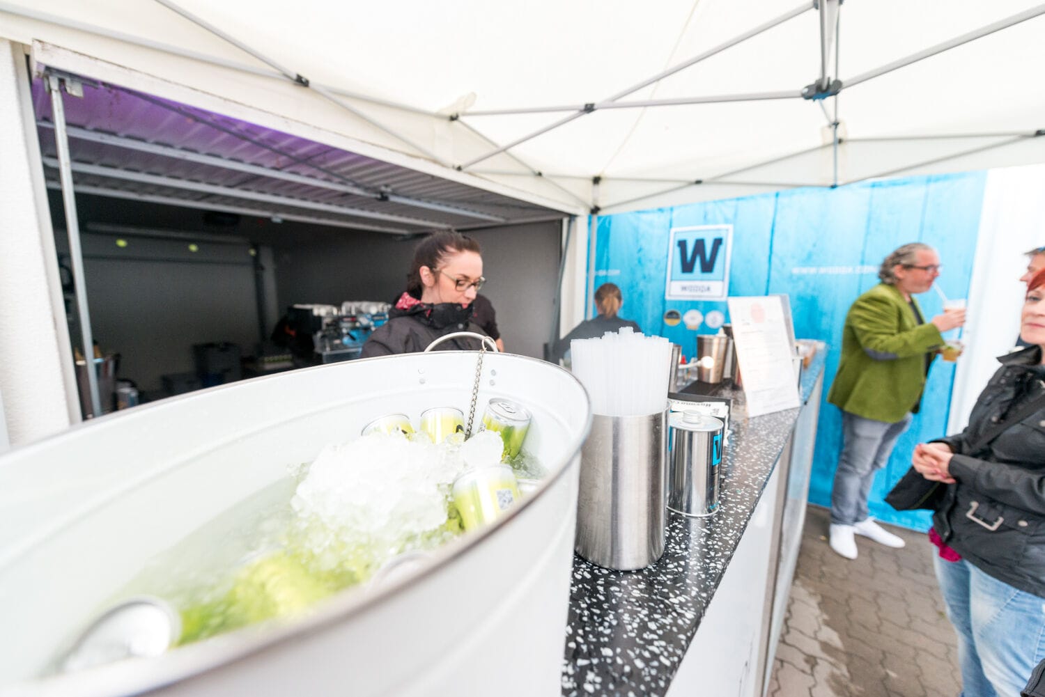 Outdoor-Event mit Menschen und Zelten, sonniger Tag.