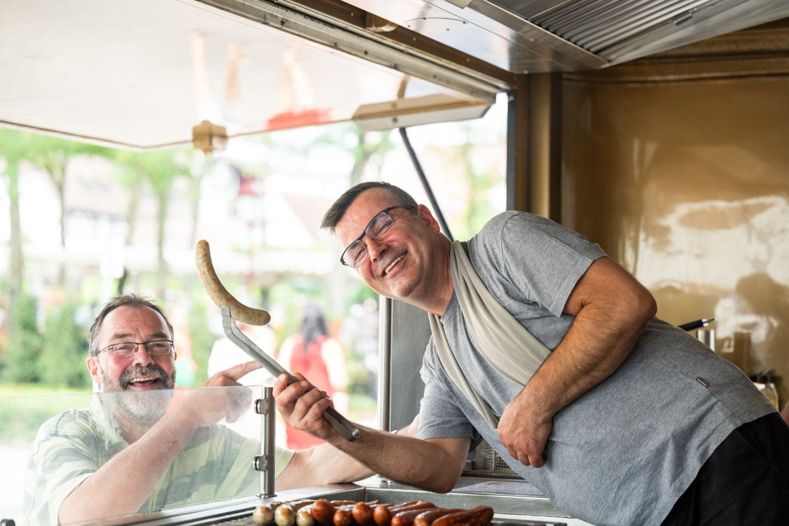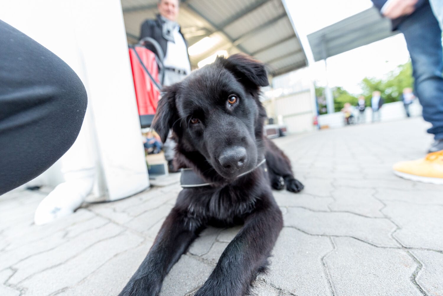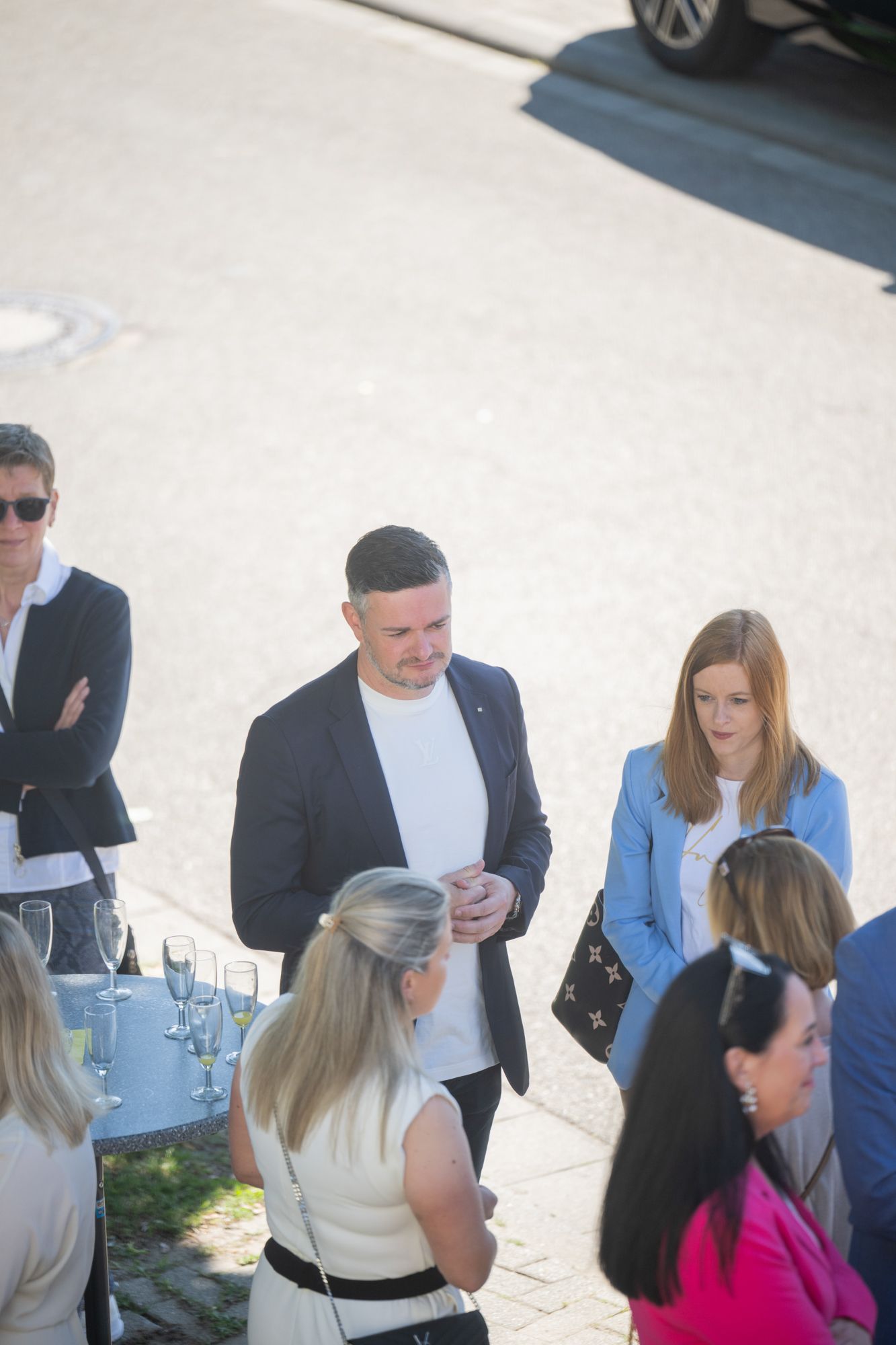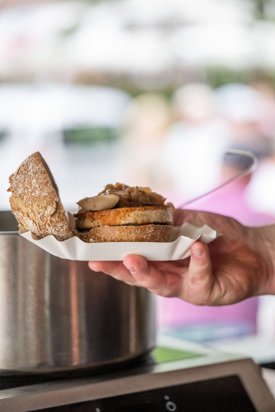 Outdoor-Event mit Menschen und Zelten, sonniger Tag.
