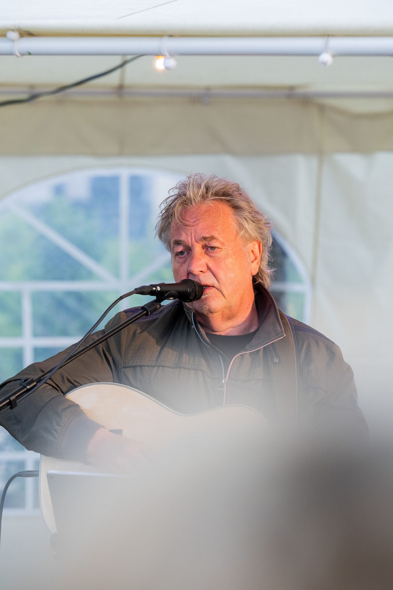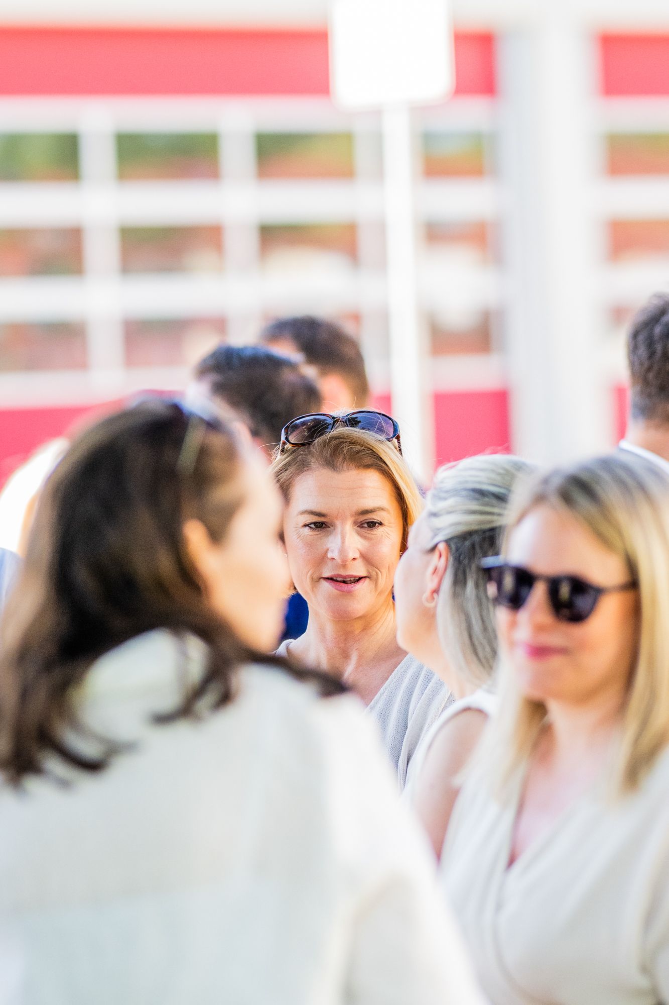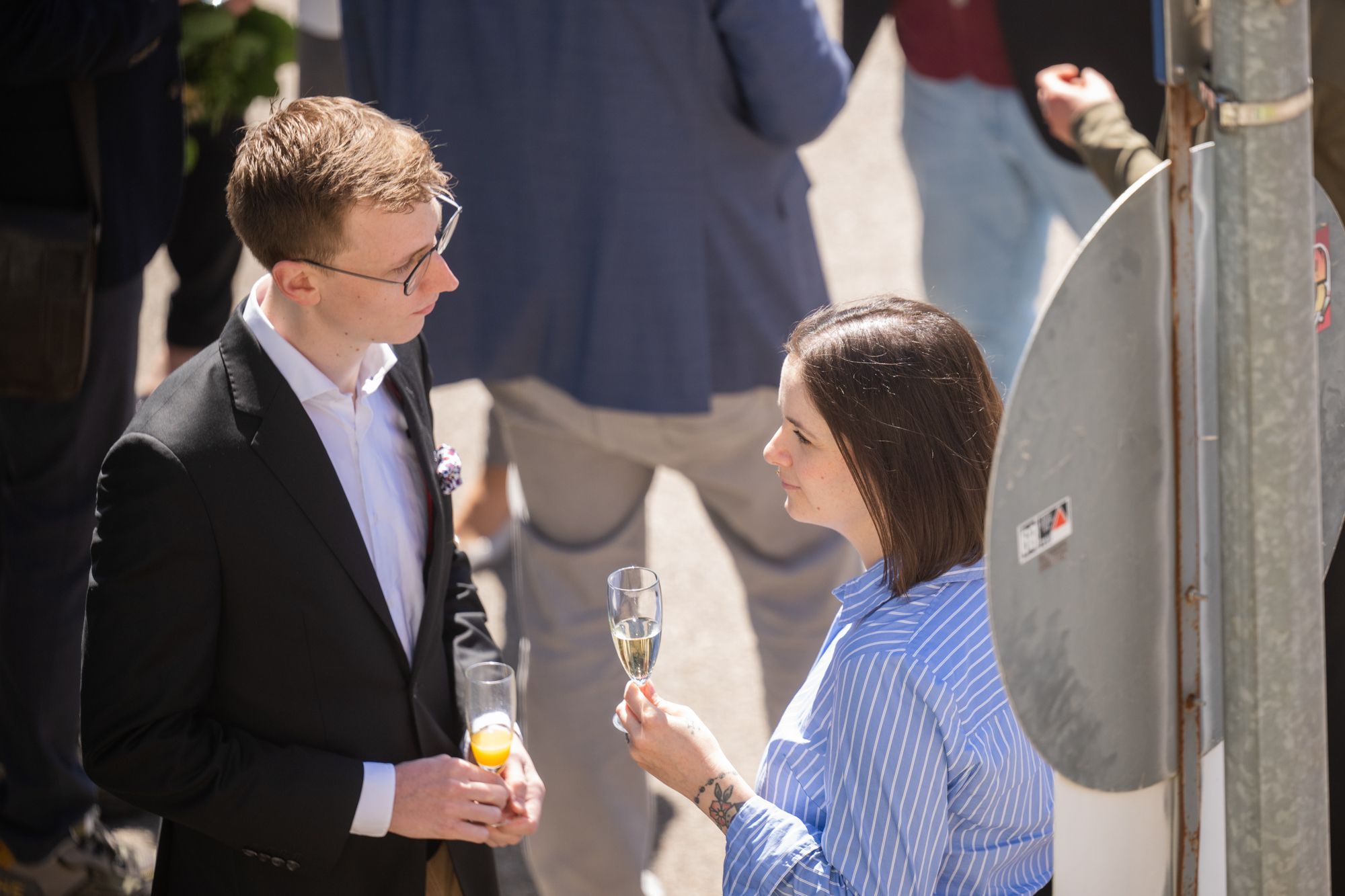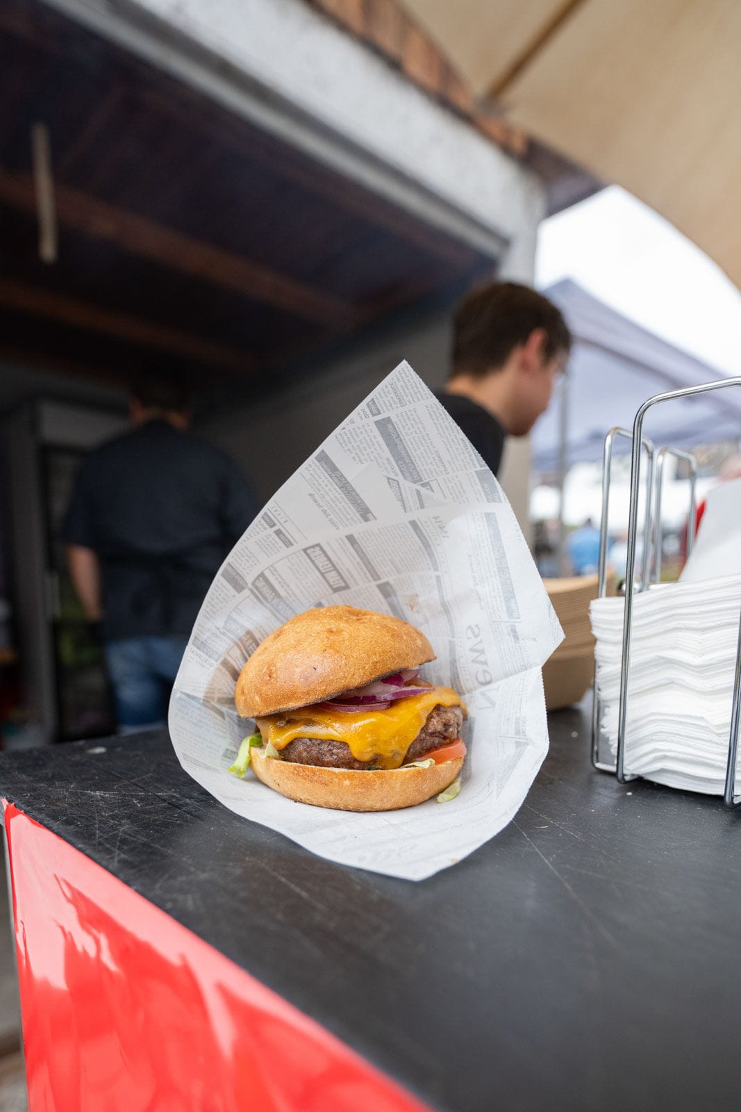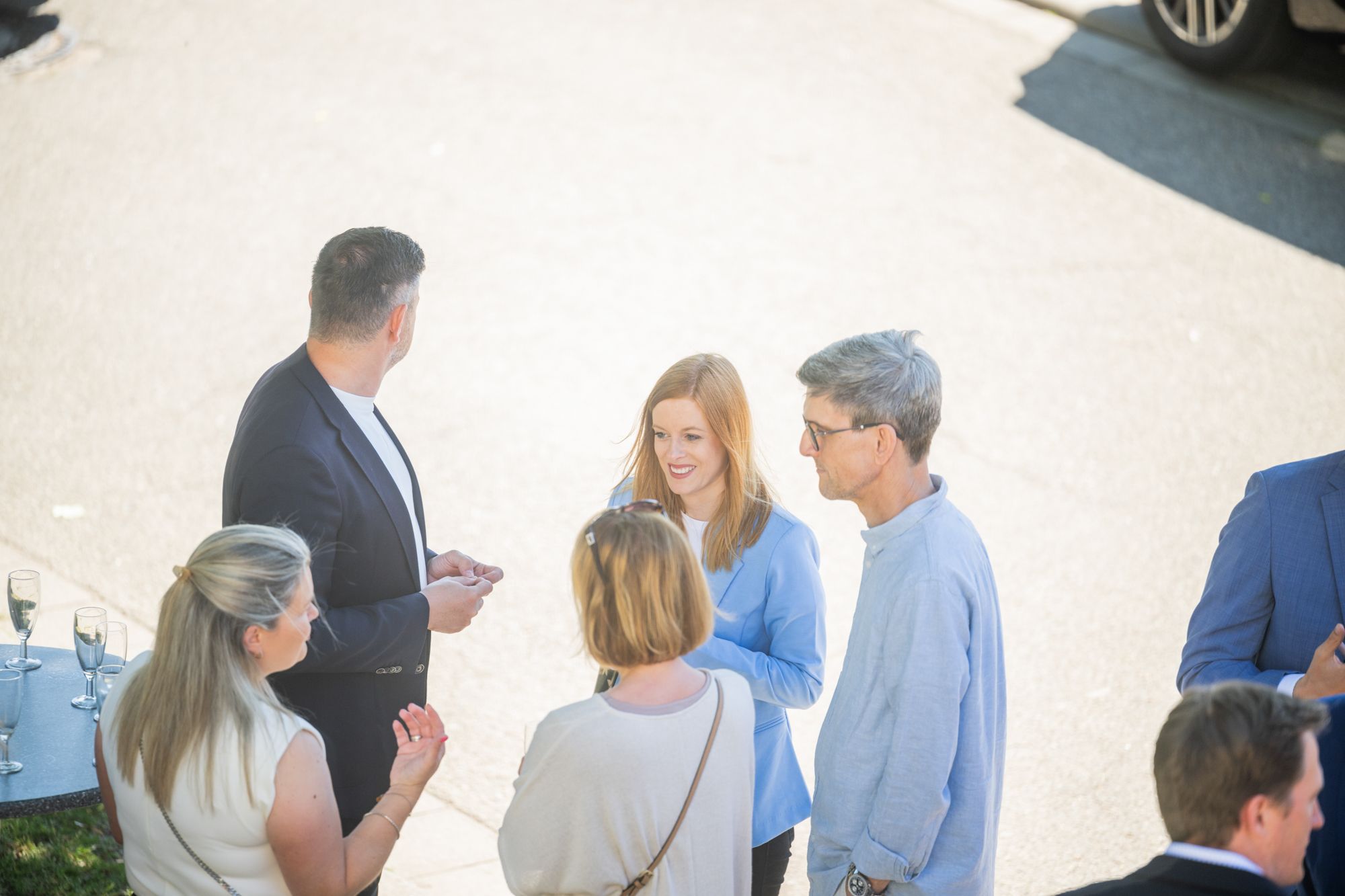 Outdoor-Event mit Menschen und Zelten, sonniger Tag.