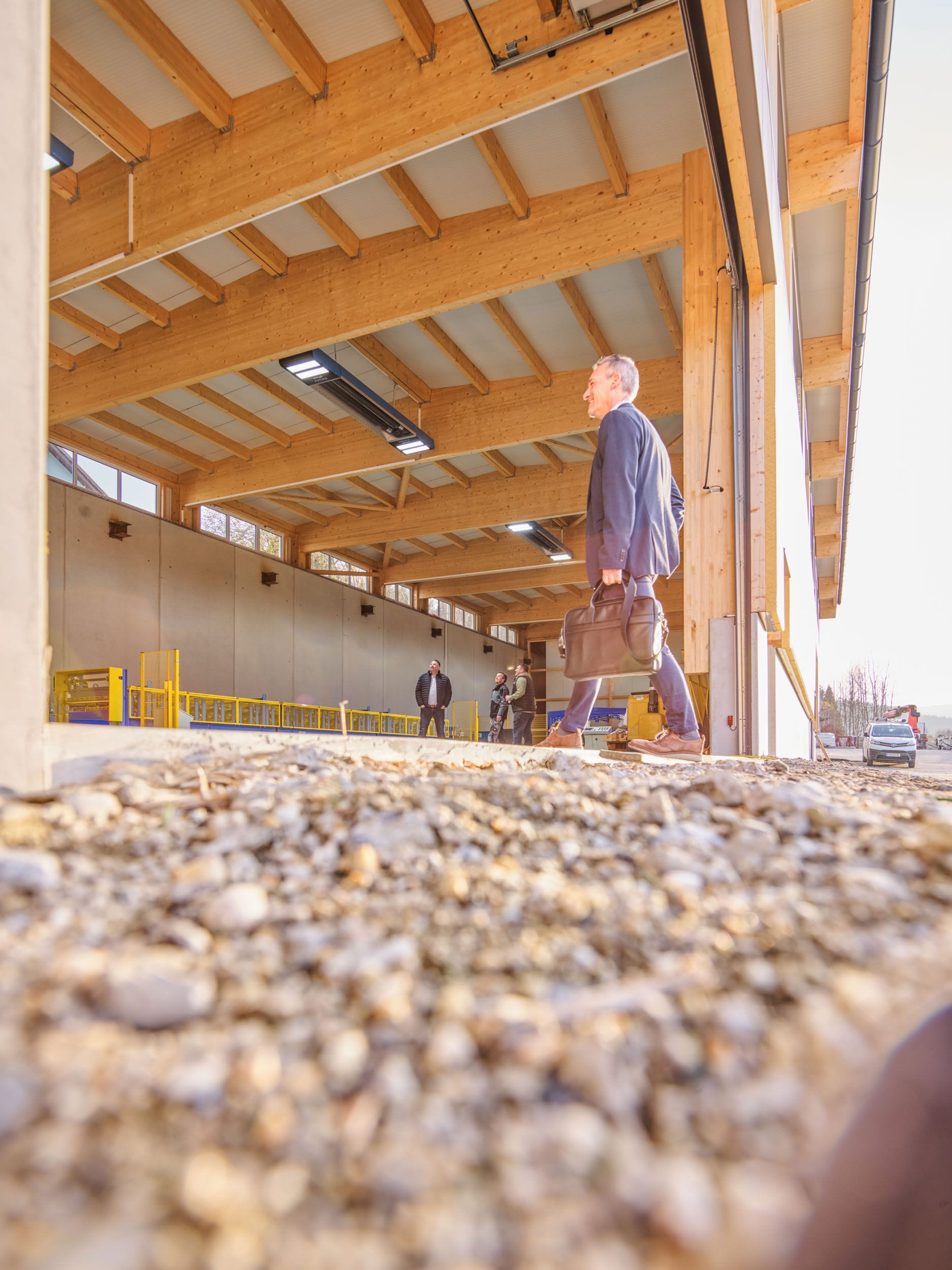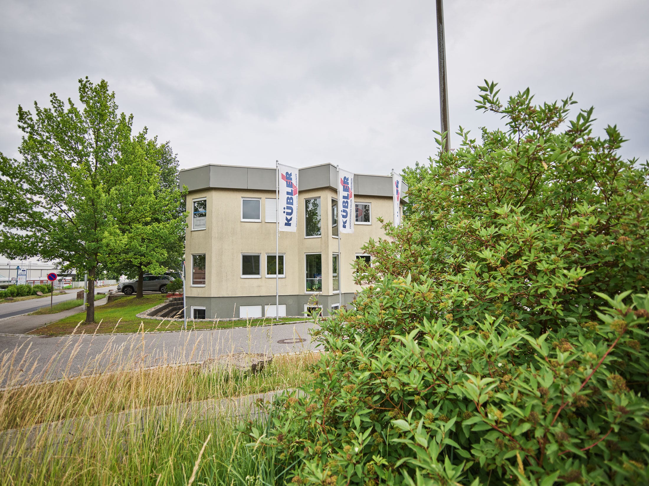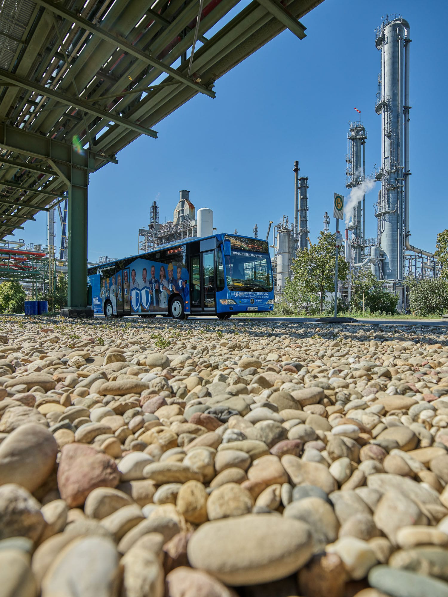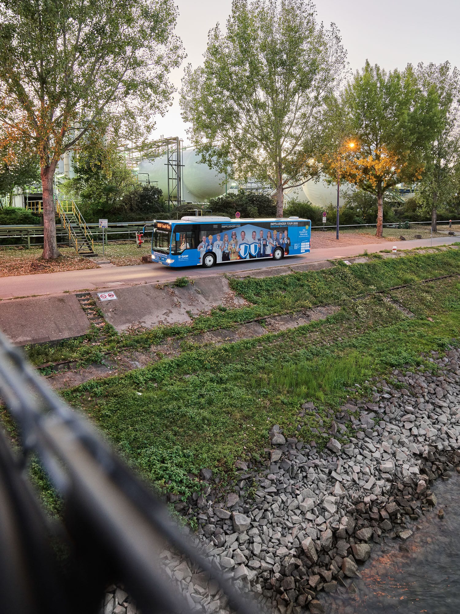 Industriegelände mit Werksbus im Vordergrund