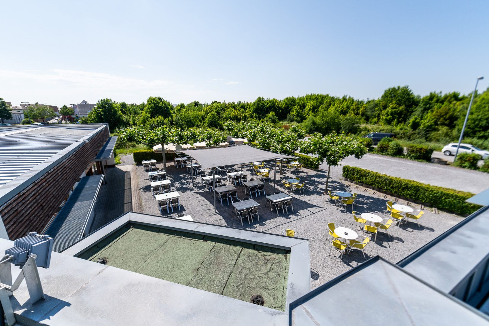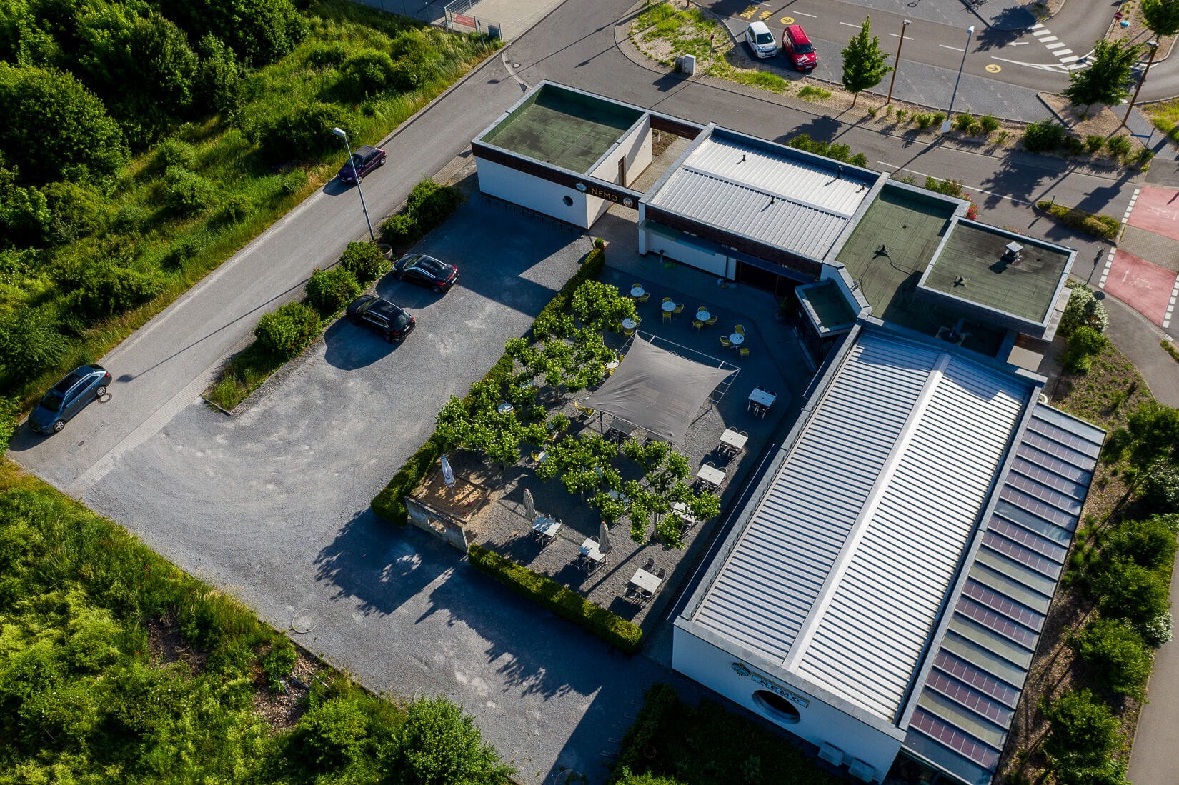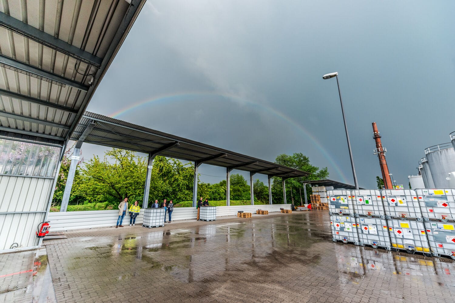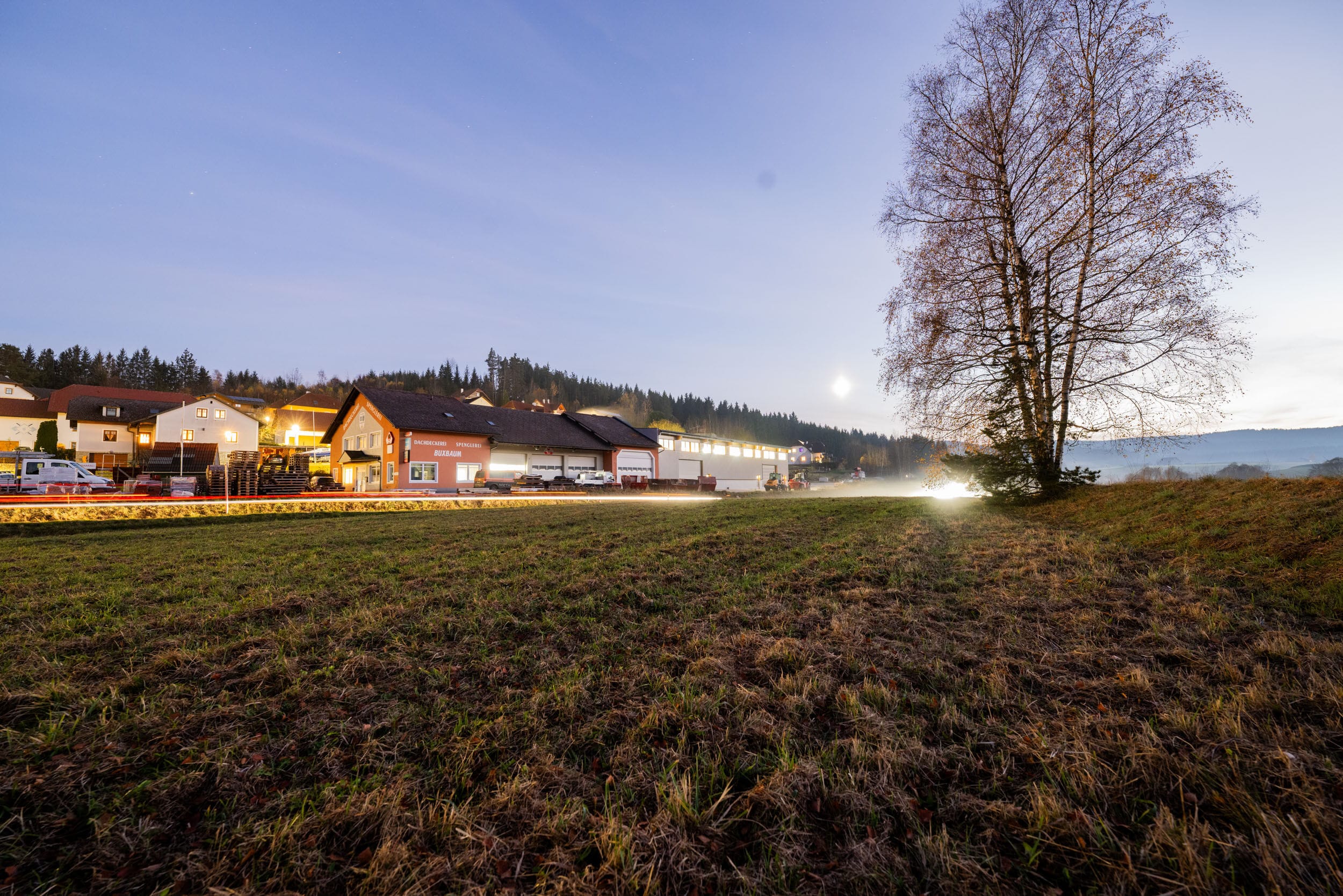 Industriegelände mit Werksbus im Vordergrund