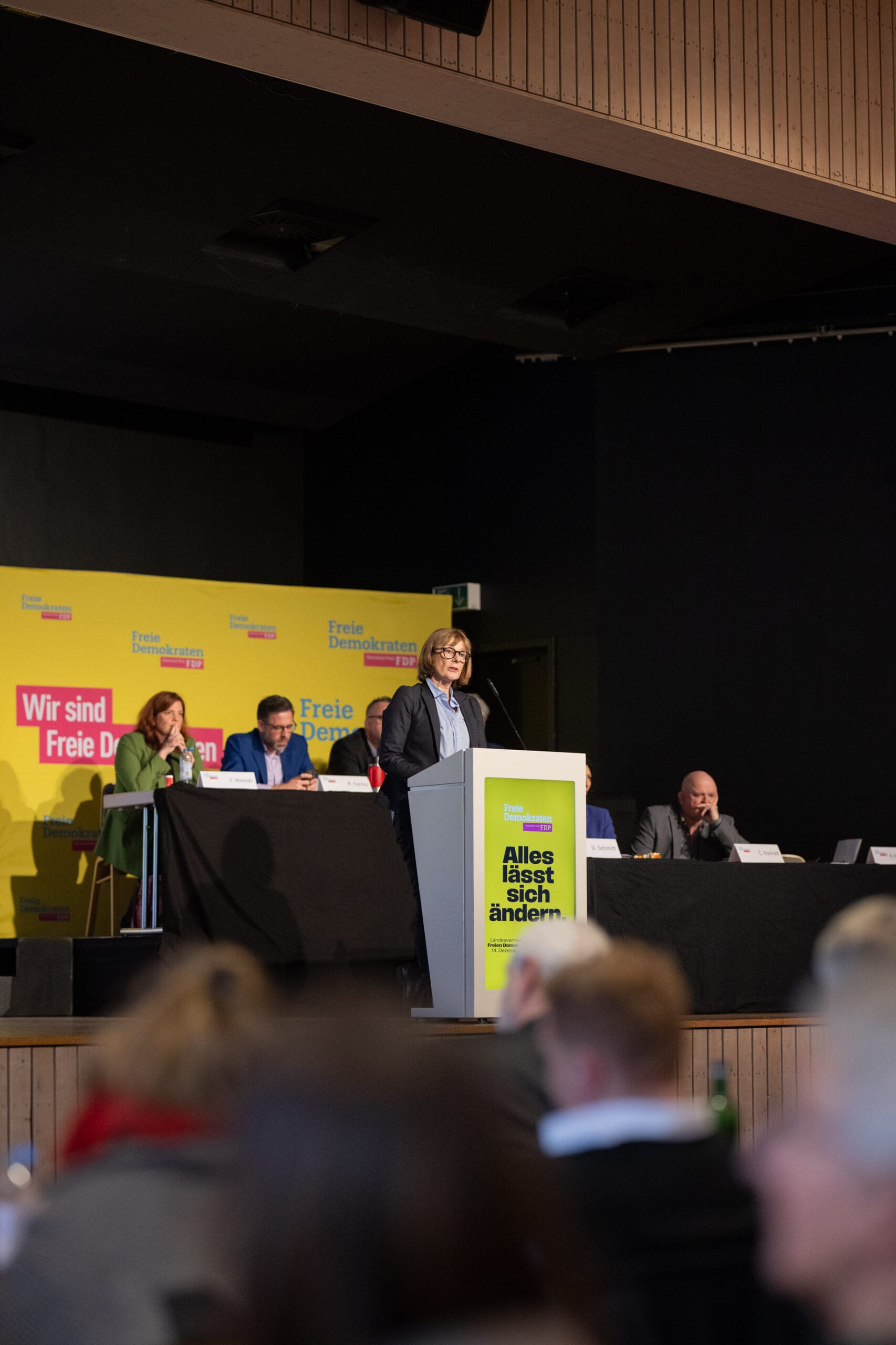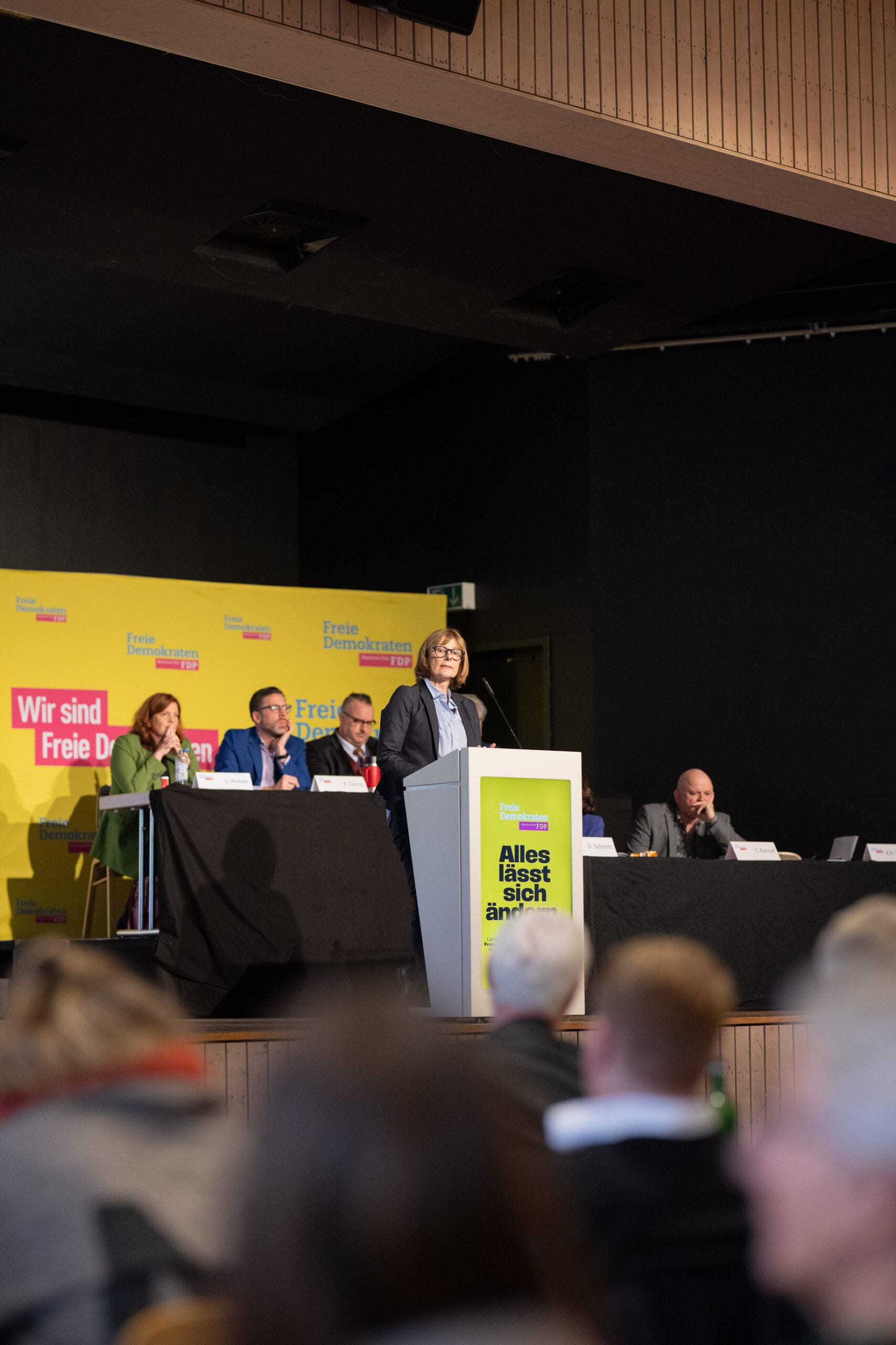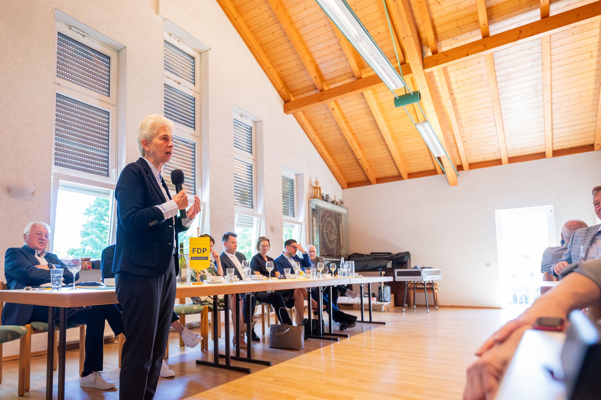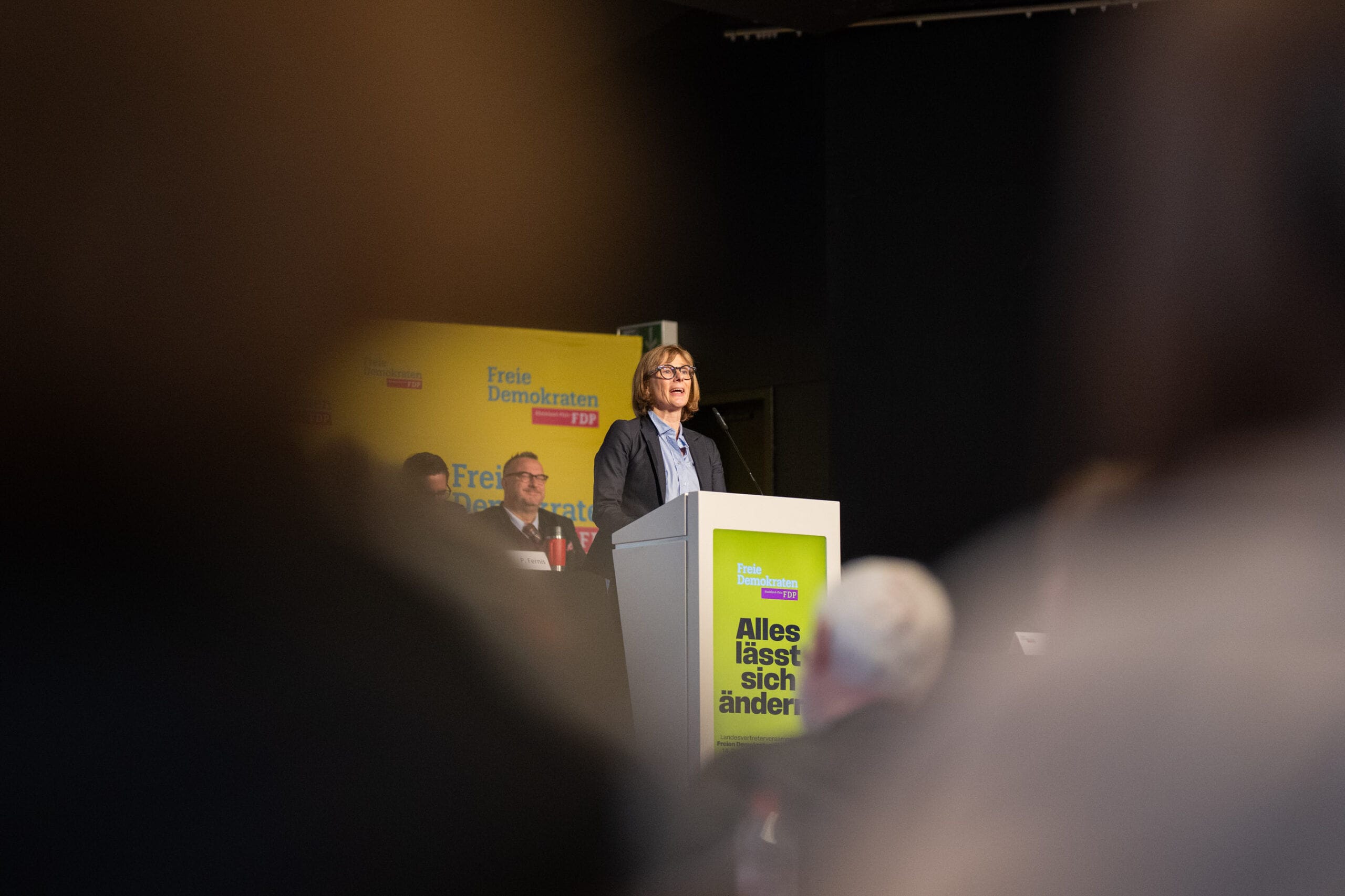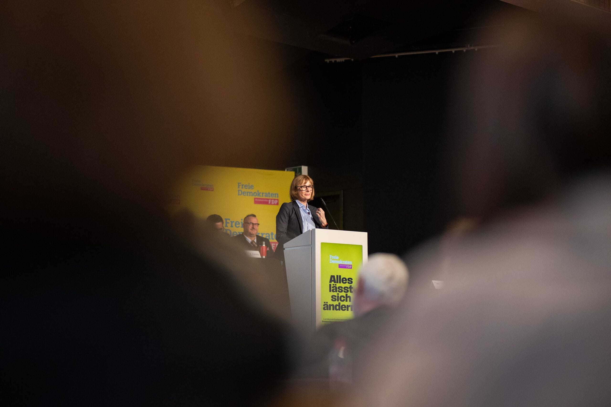 Rednerin am FDP-Rednerpult bei Veranstaltung