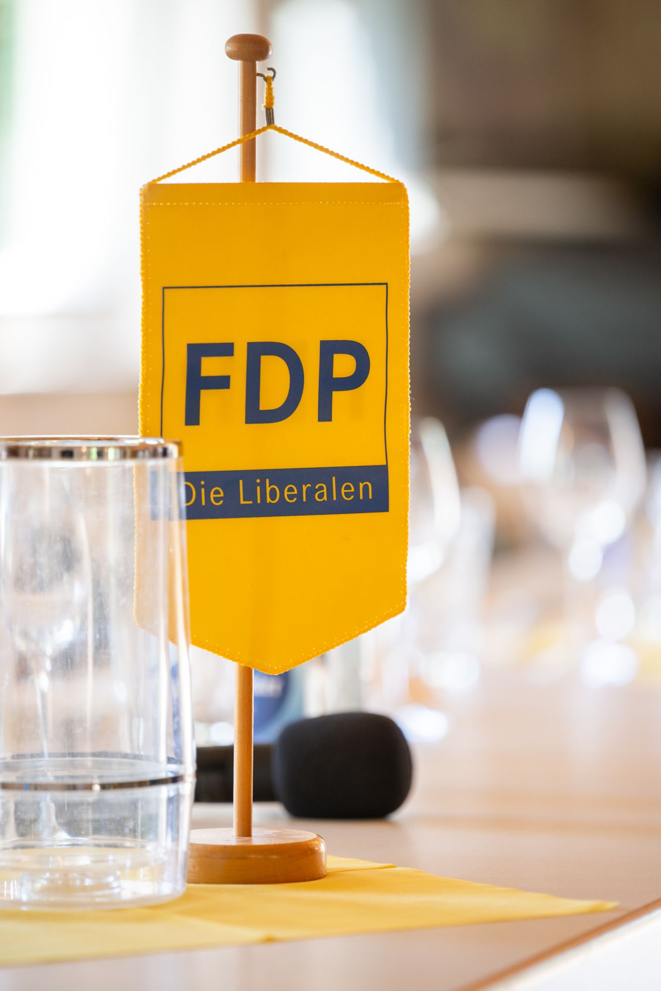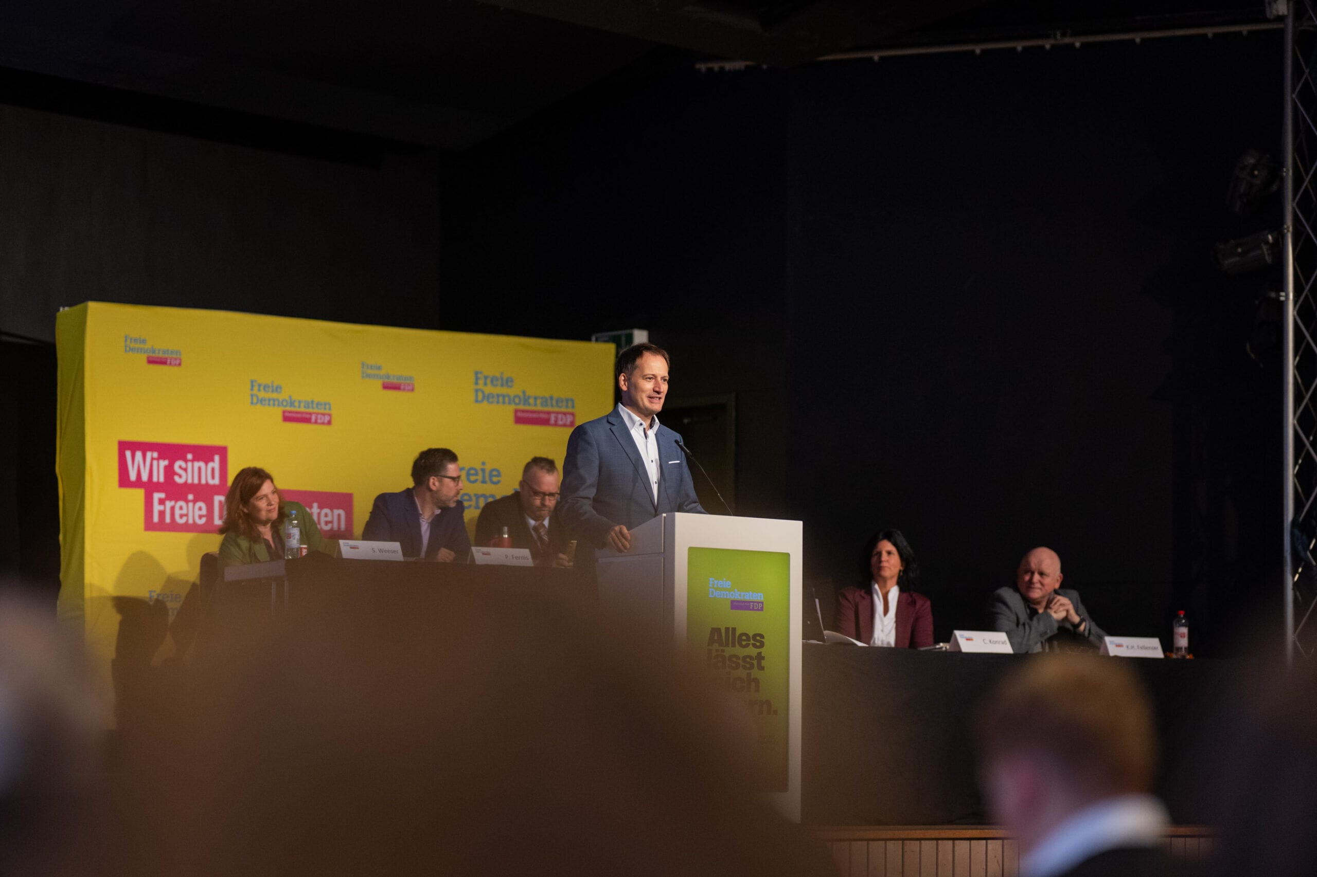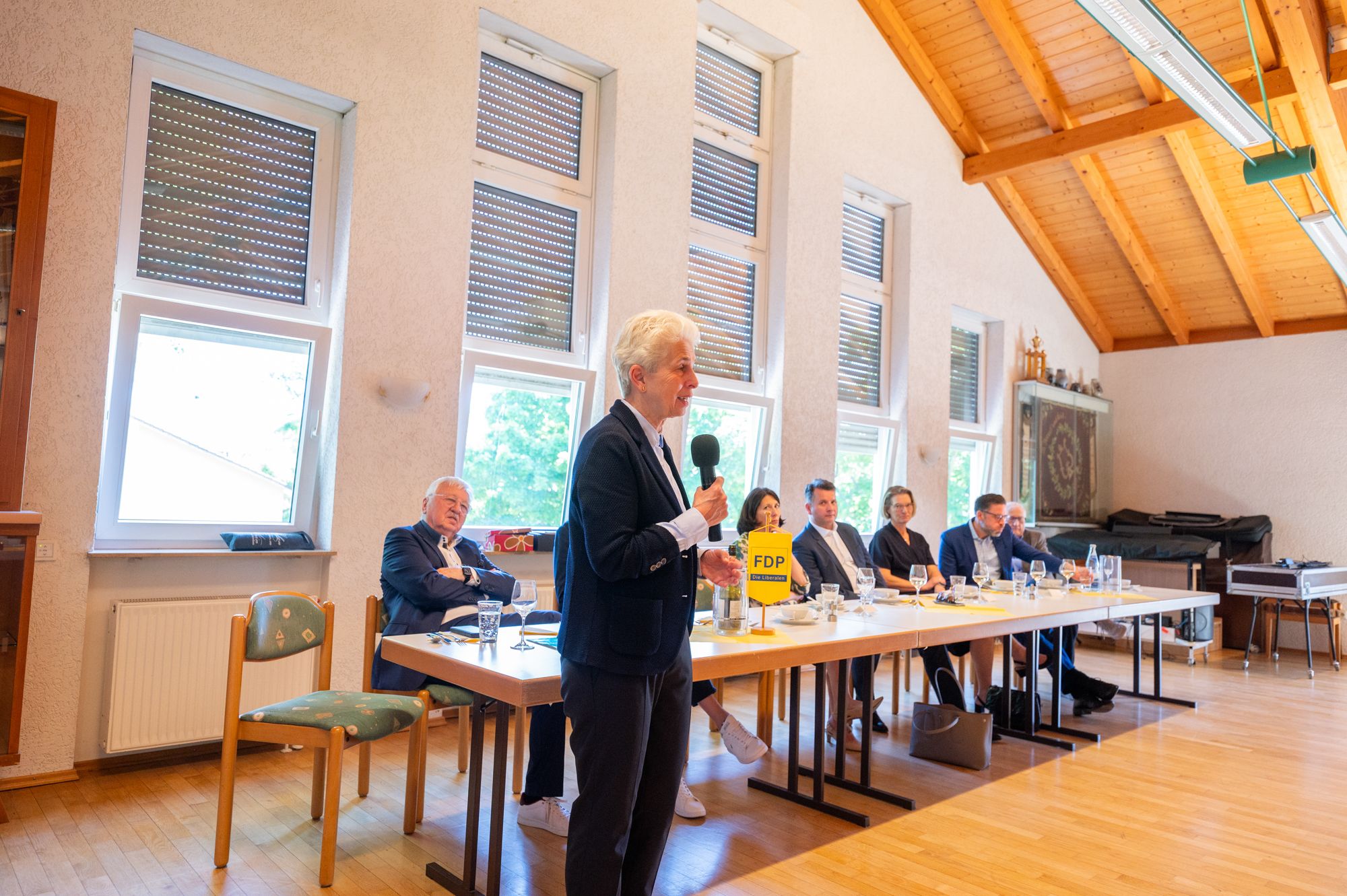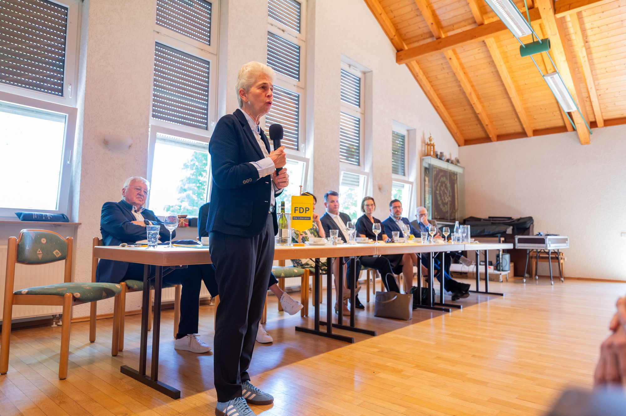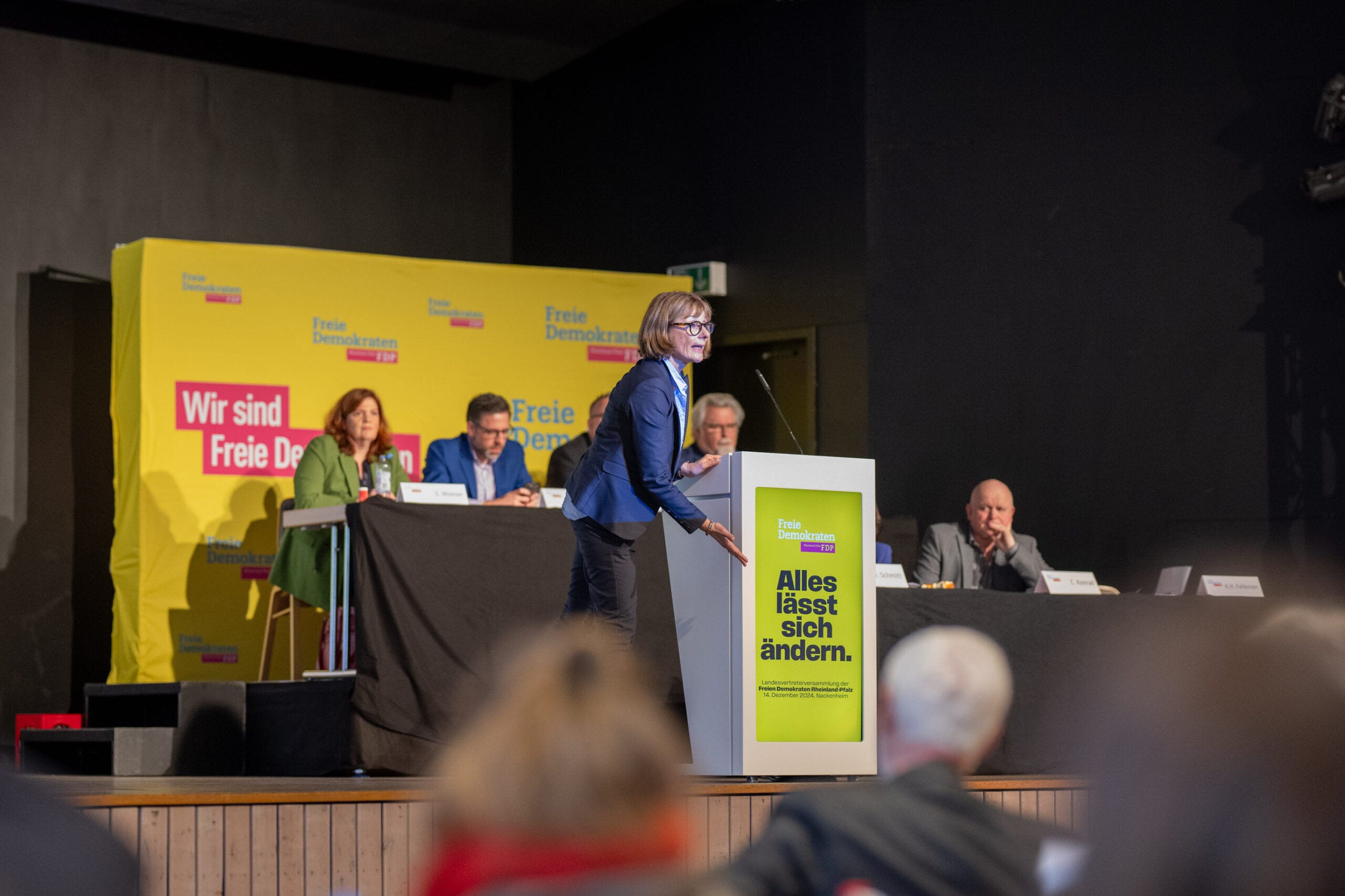 Rednerin am FDP-Rednerpult bei Veranstaltung