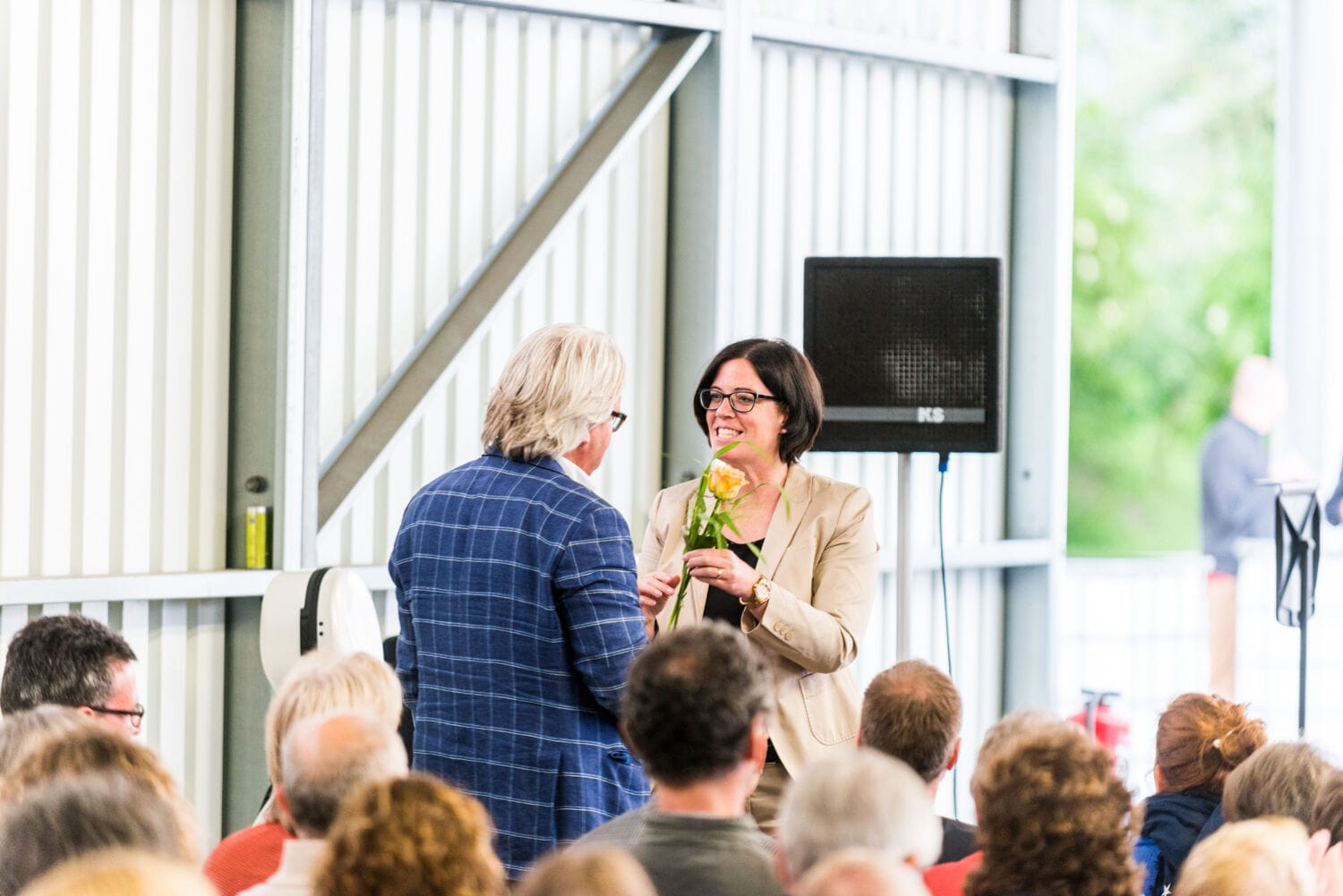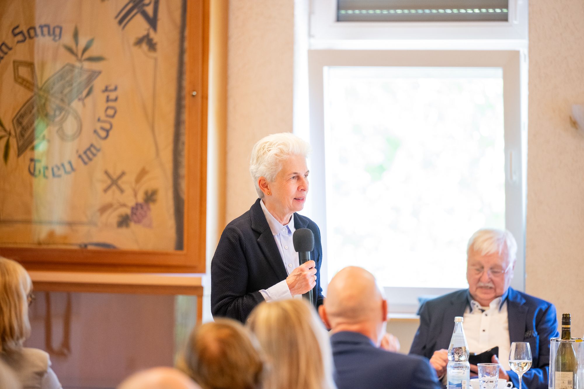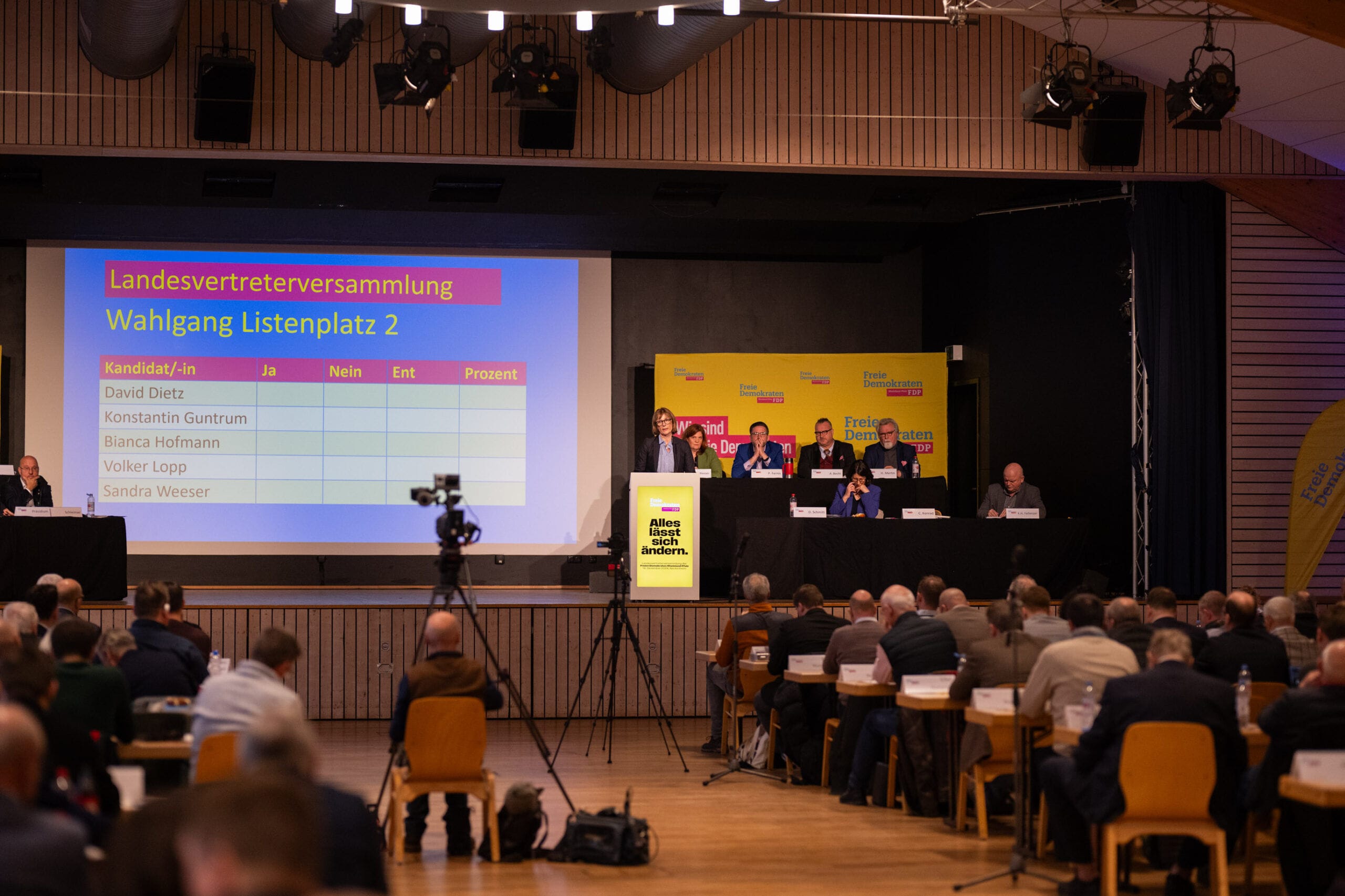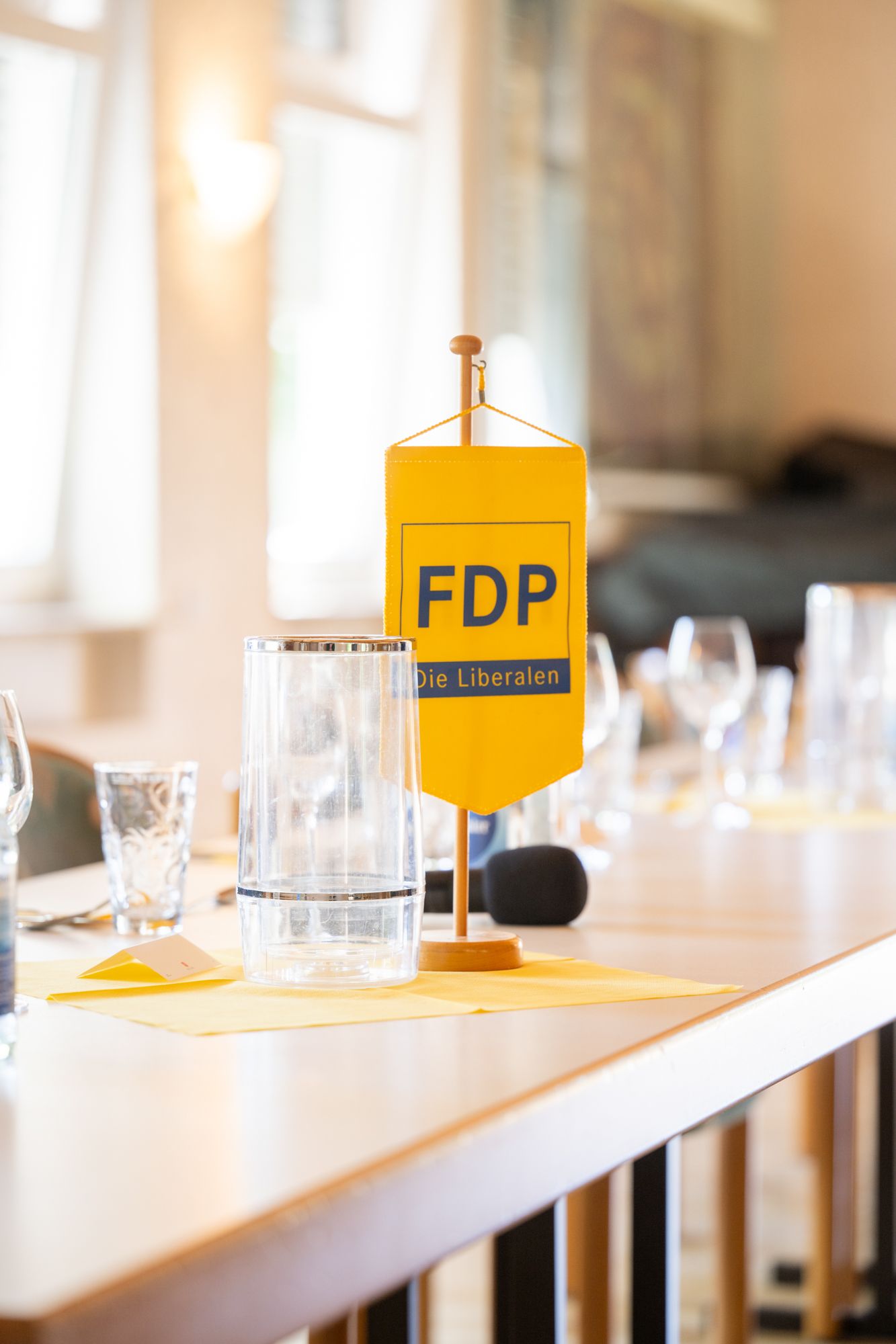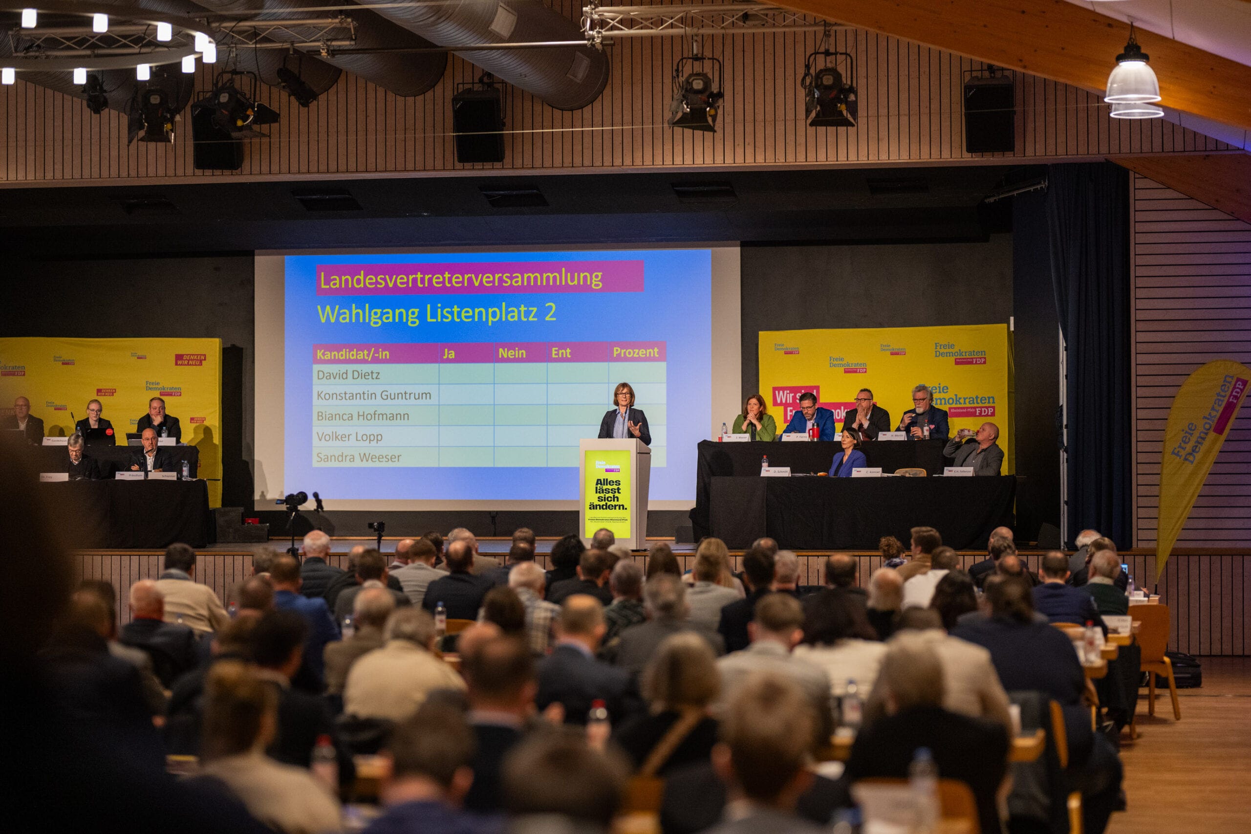 Rednerin am FDP-Rednerpult bei Veranstaltung