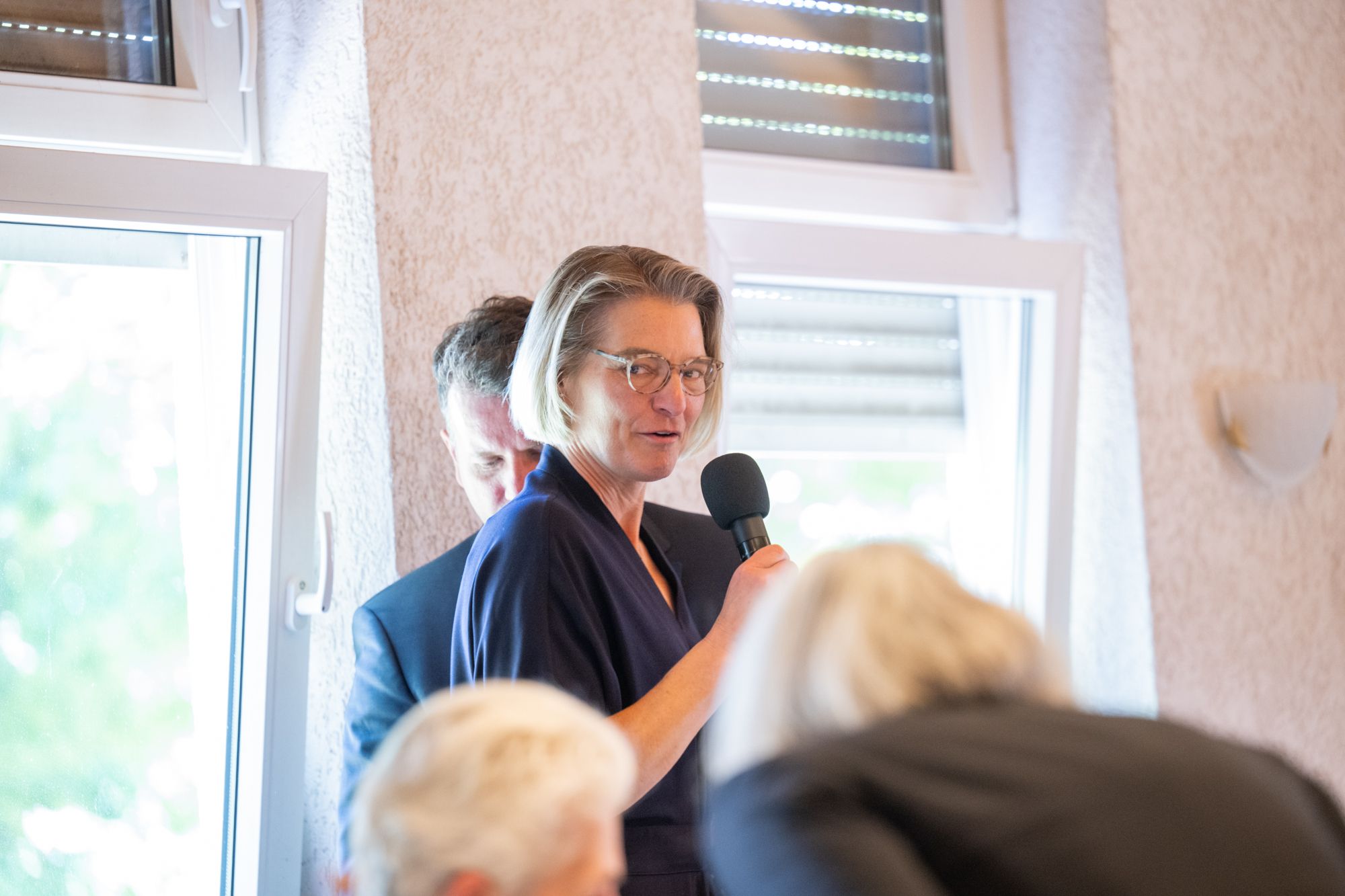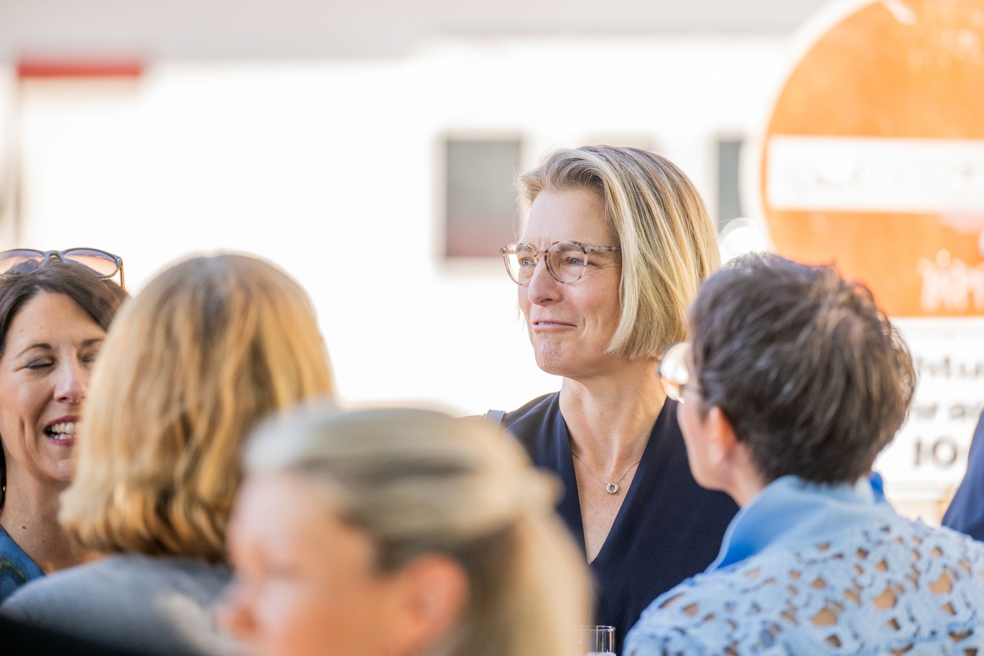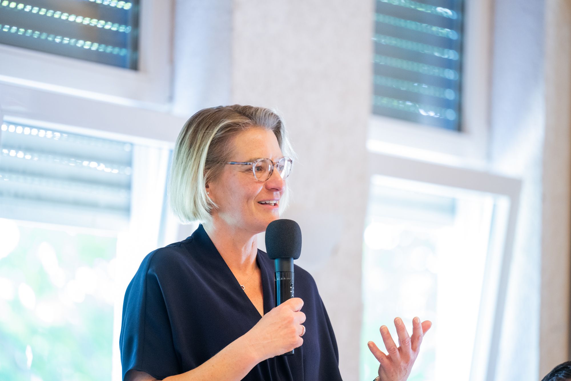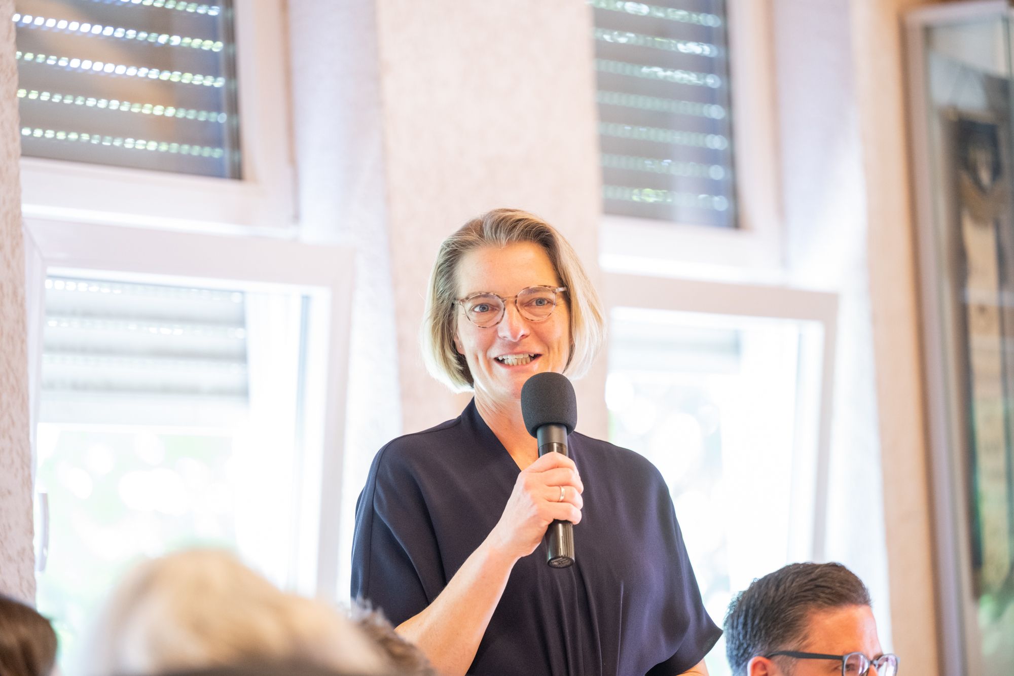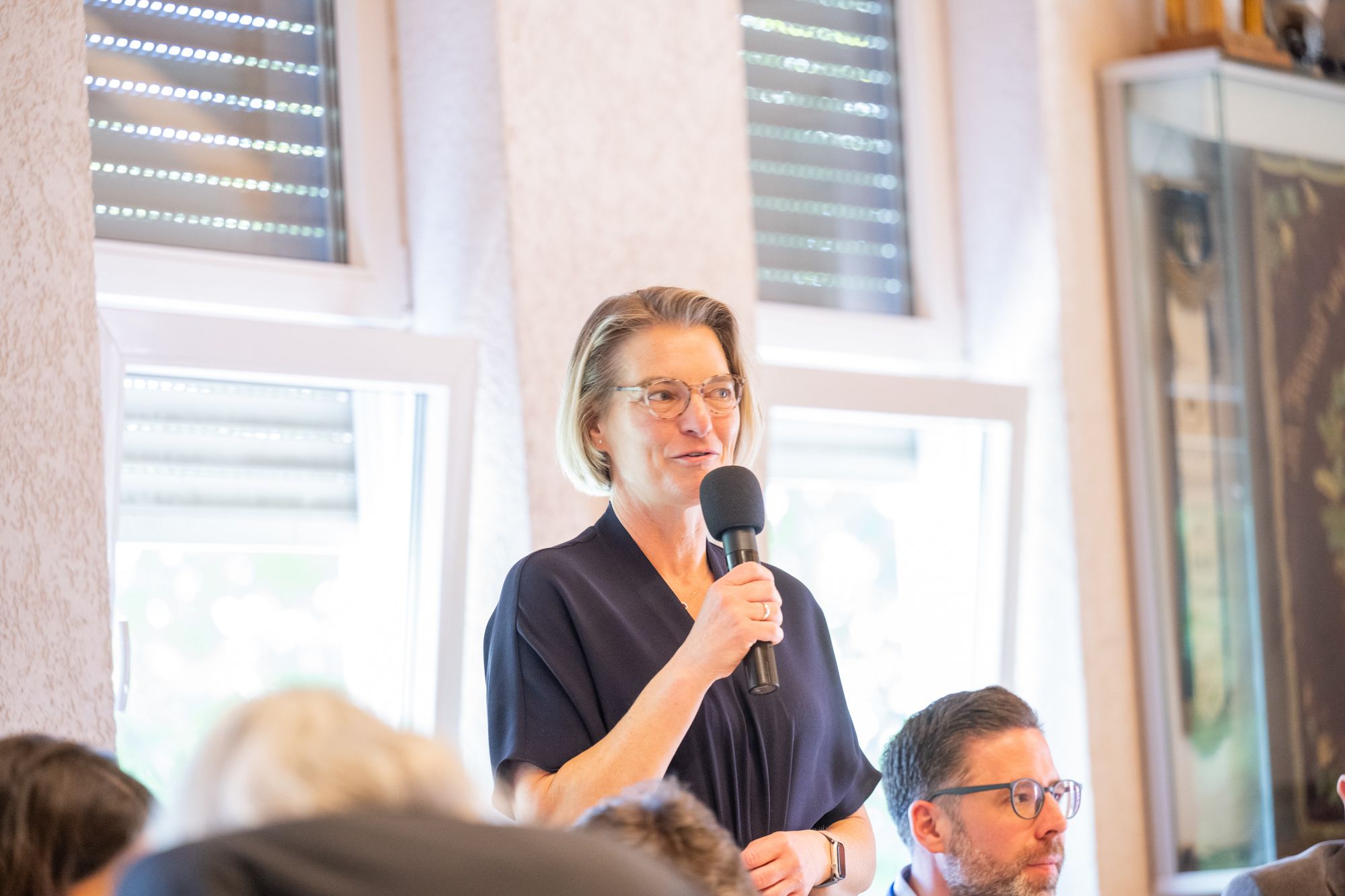 Rednerin am FDP-Rednerpult bei Veranstaltung