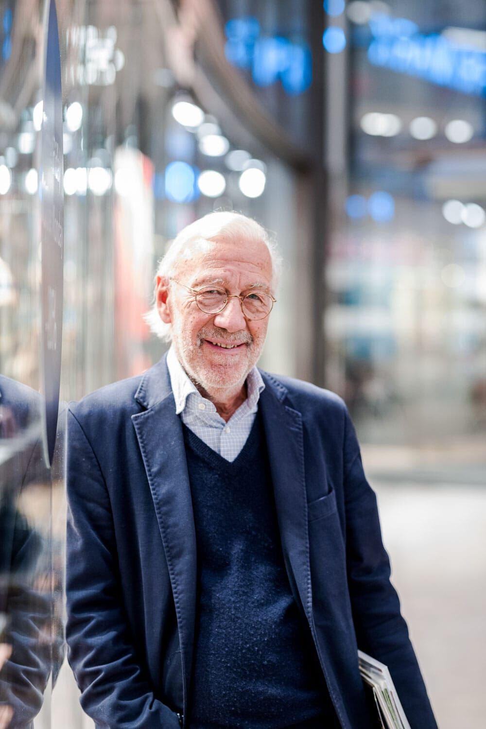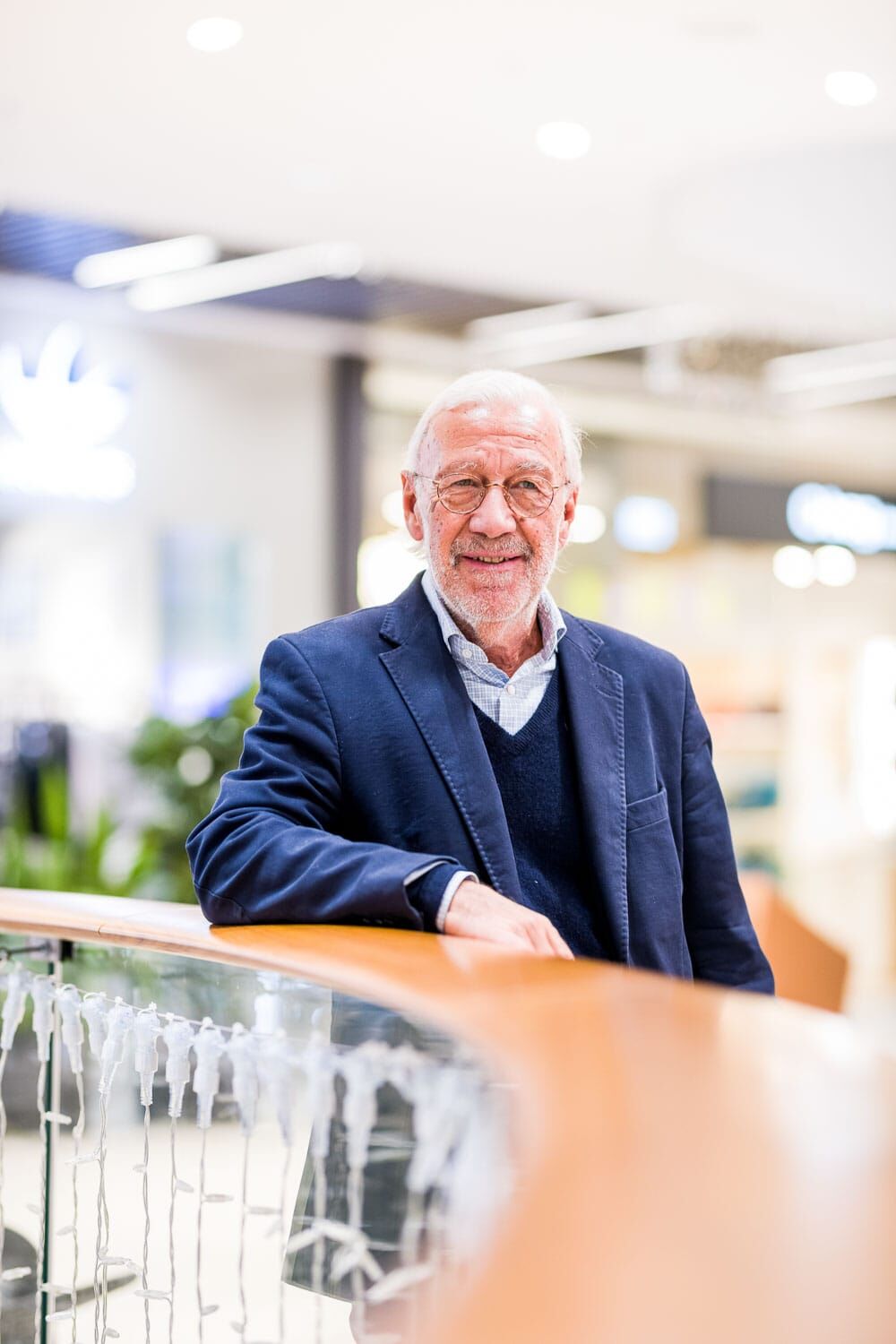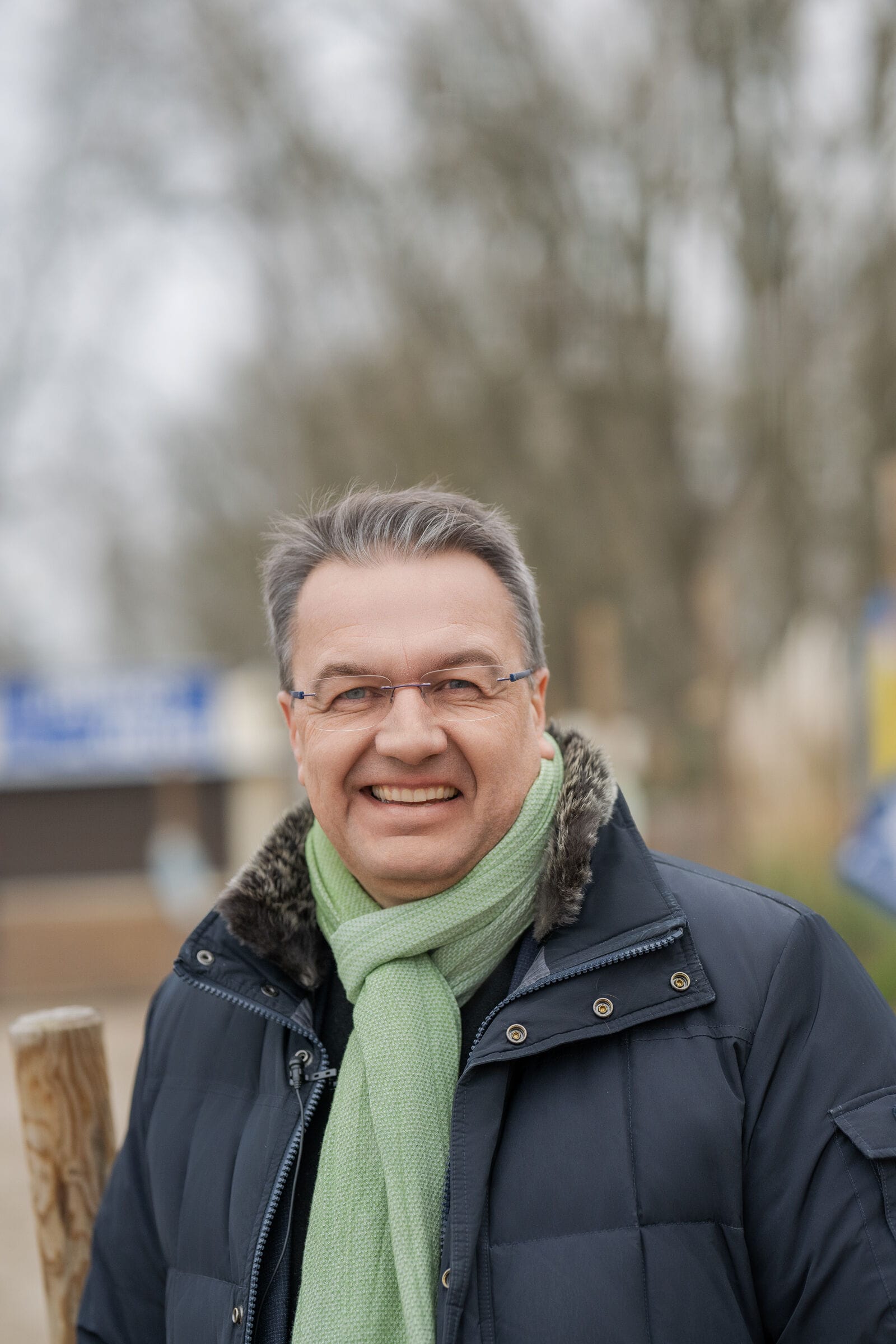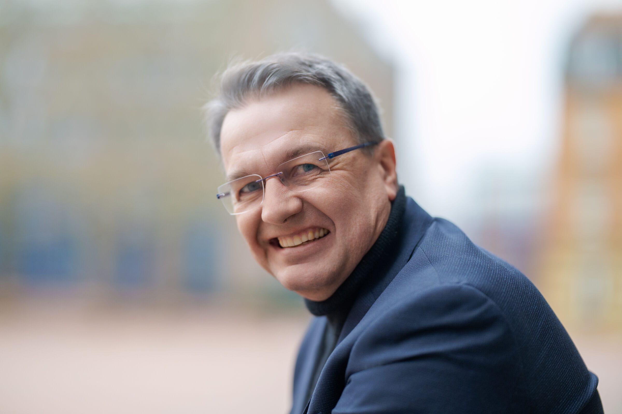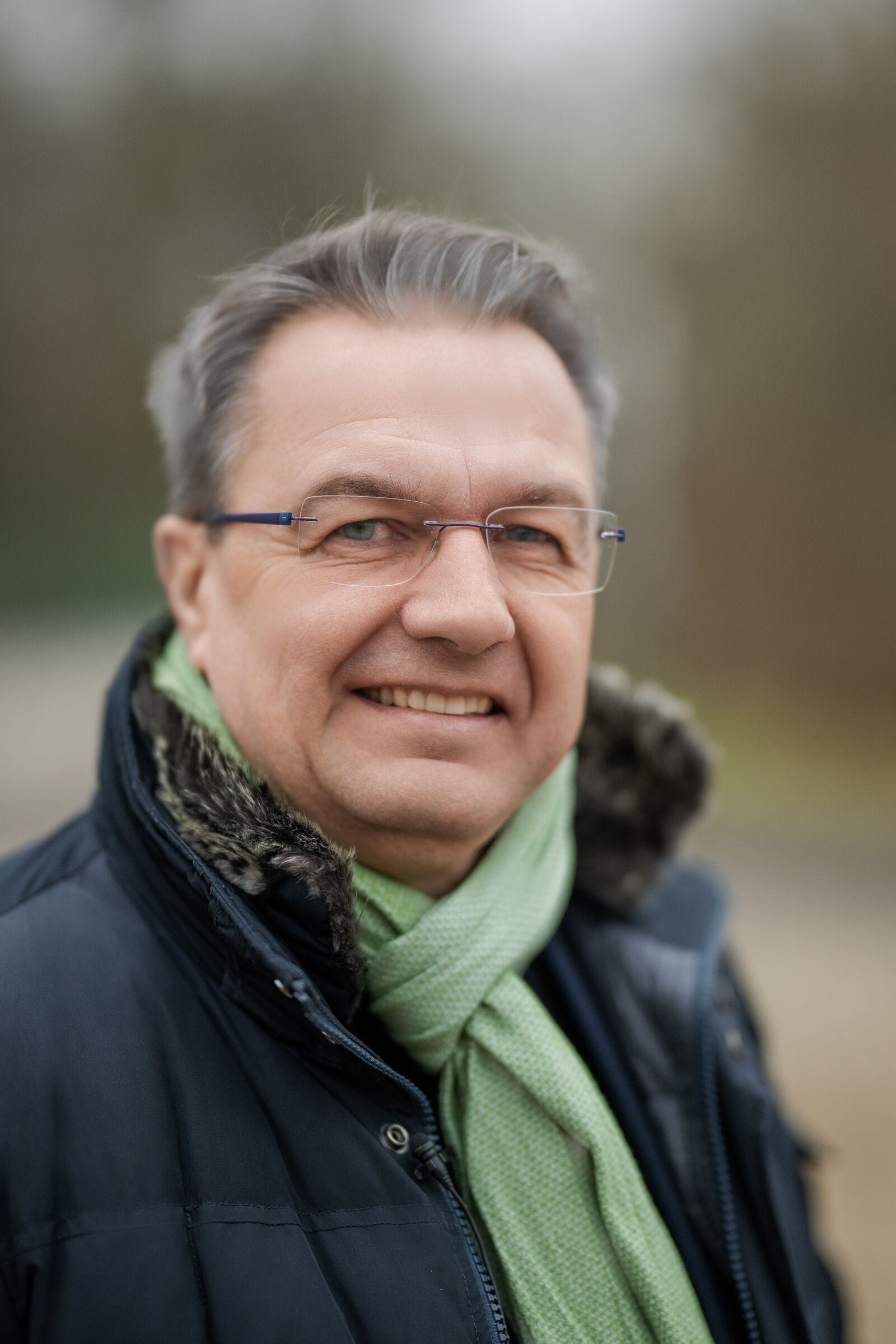 Älterer Mann in blauer Jacke lächelt freundlich.