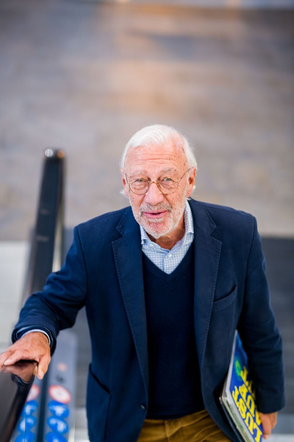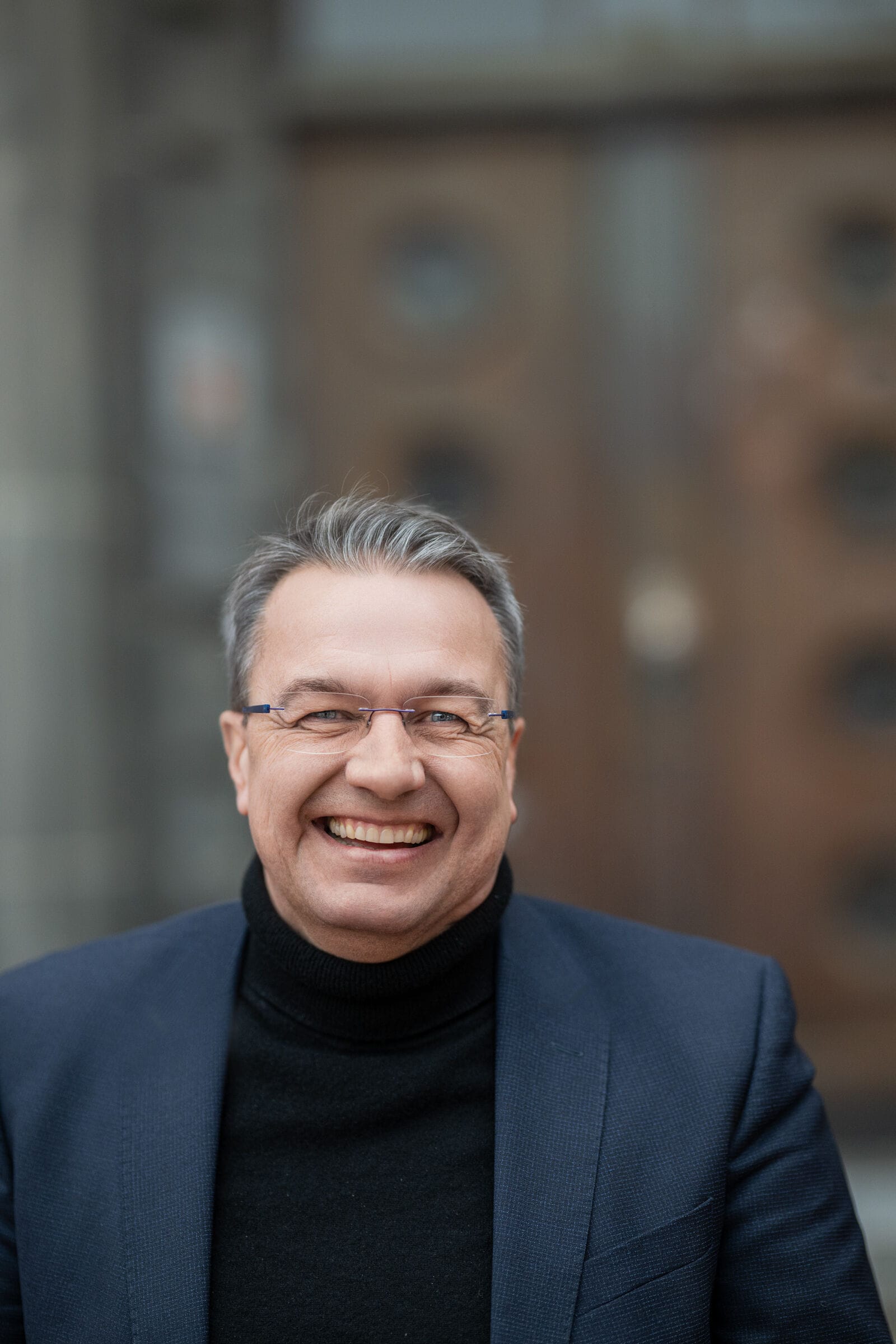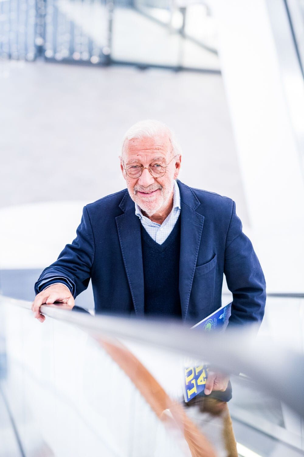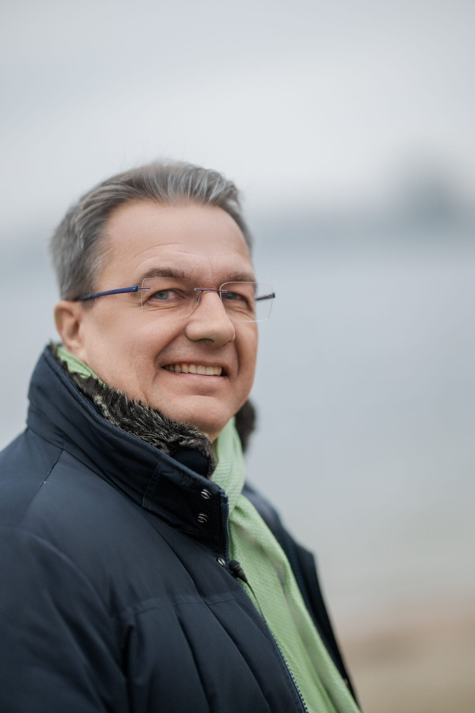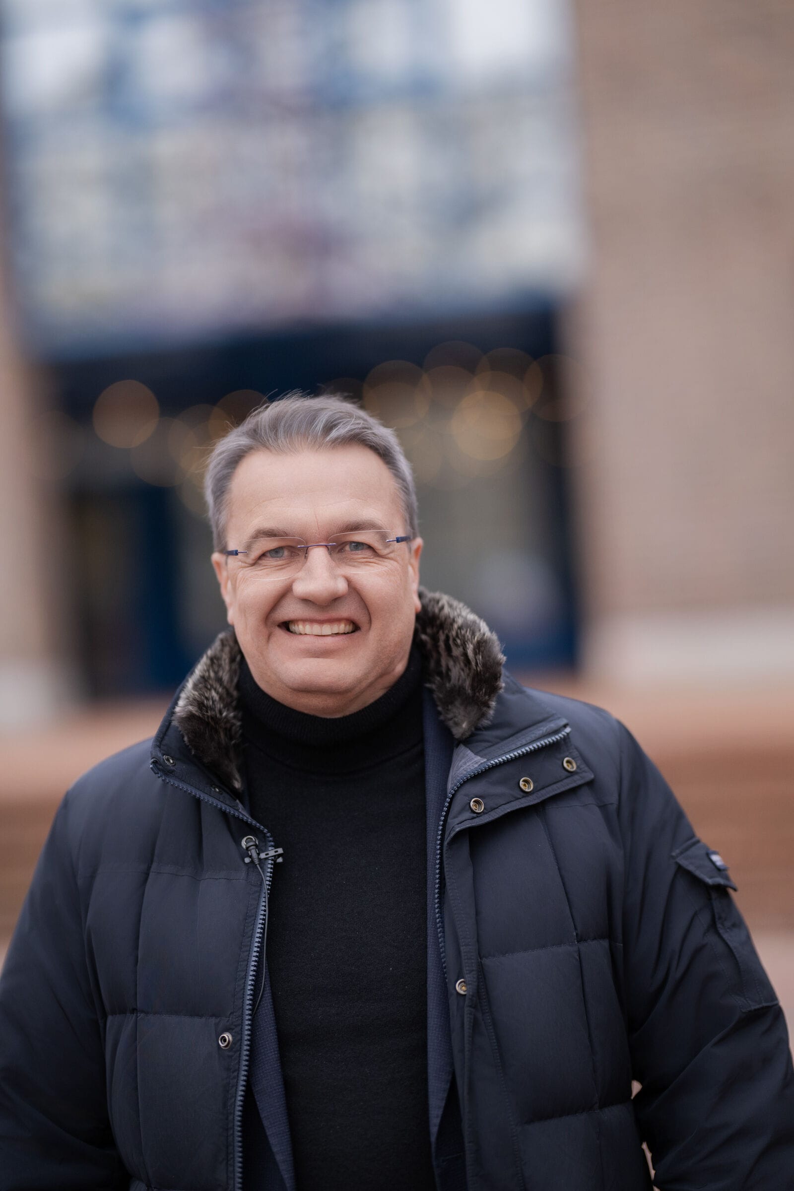 Älterer Mann in blauer Jacke lächelt freundlich.