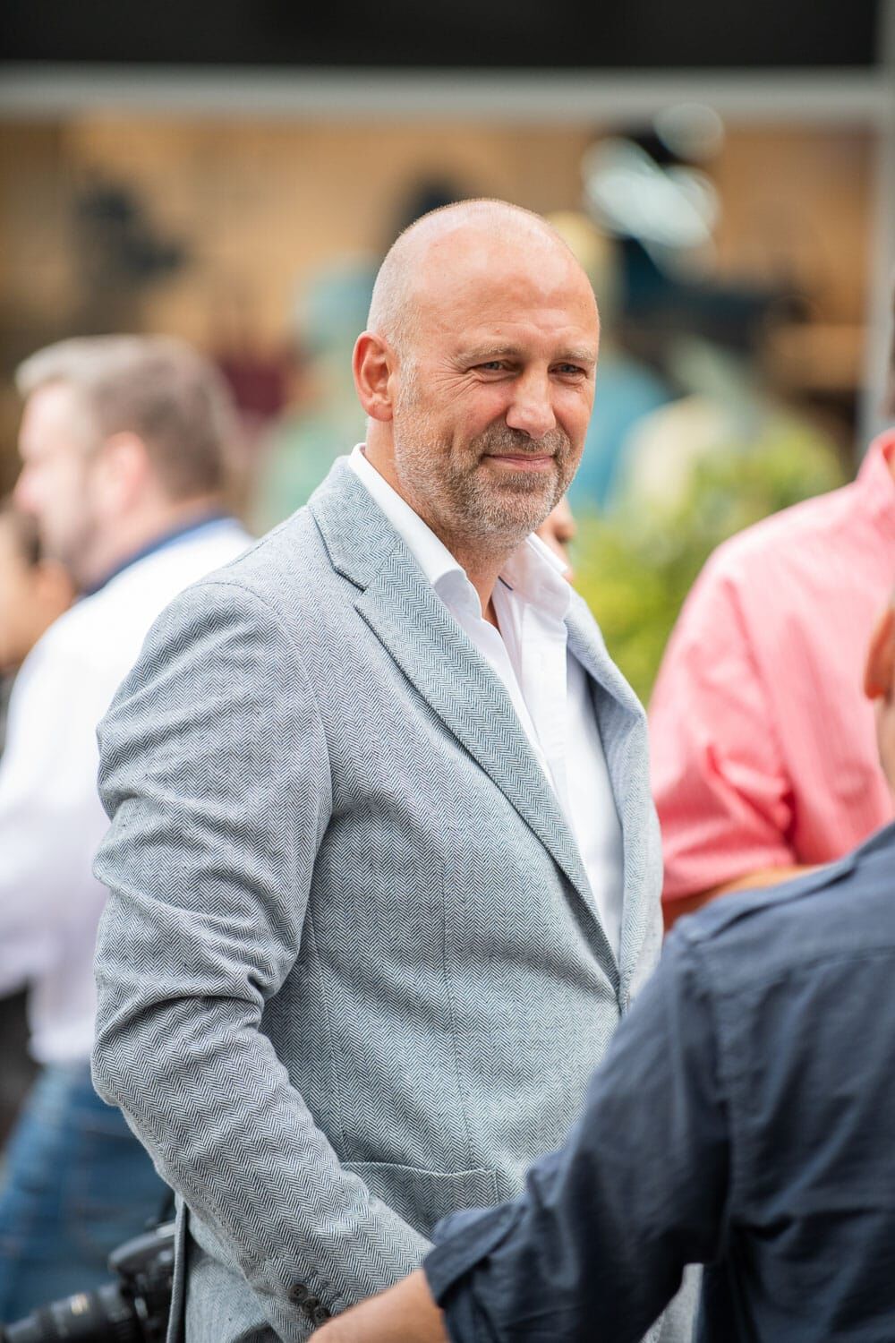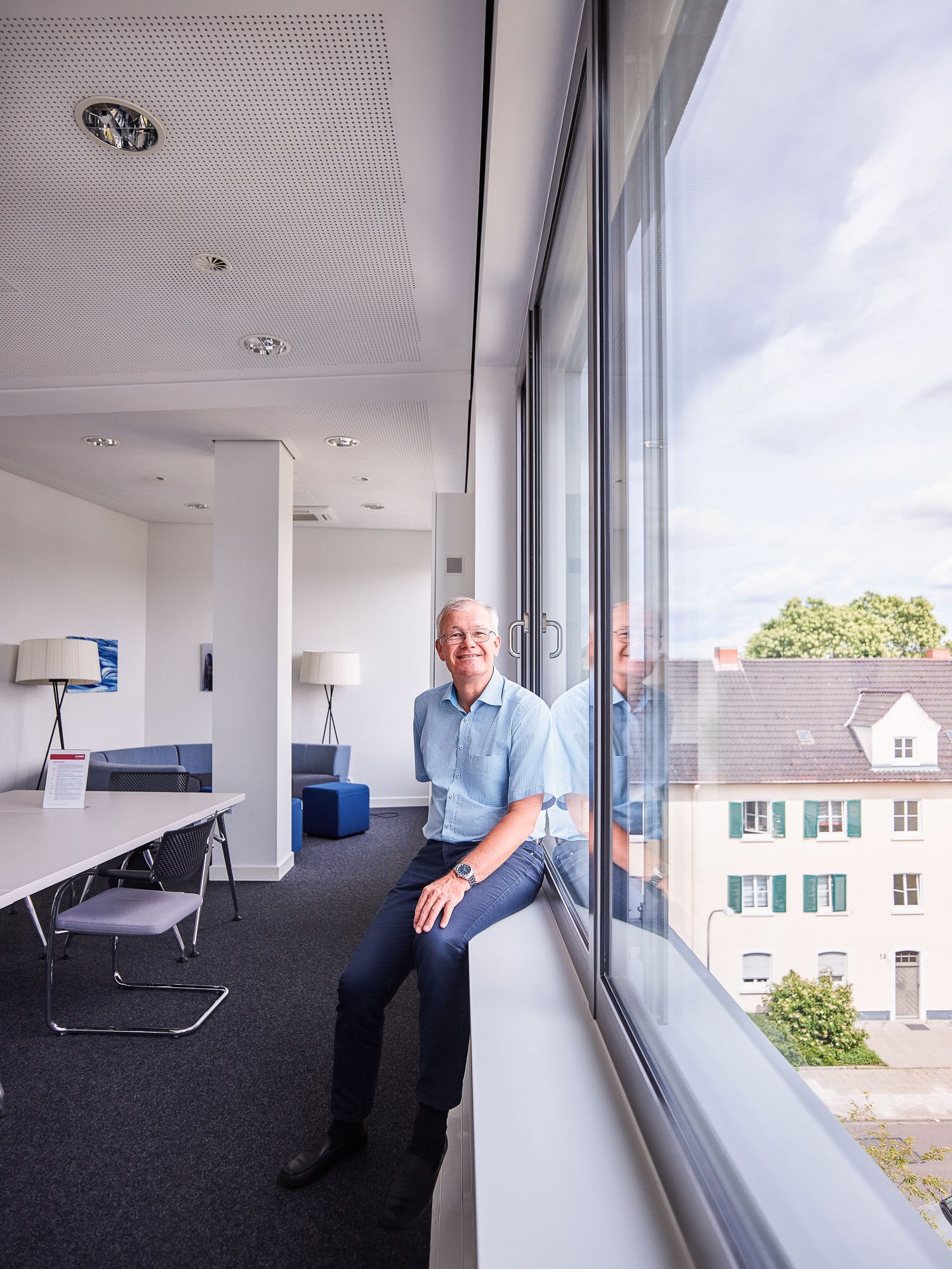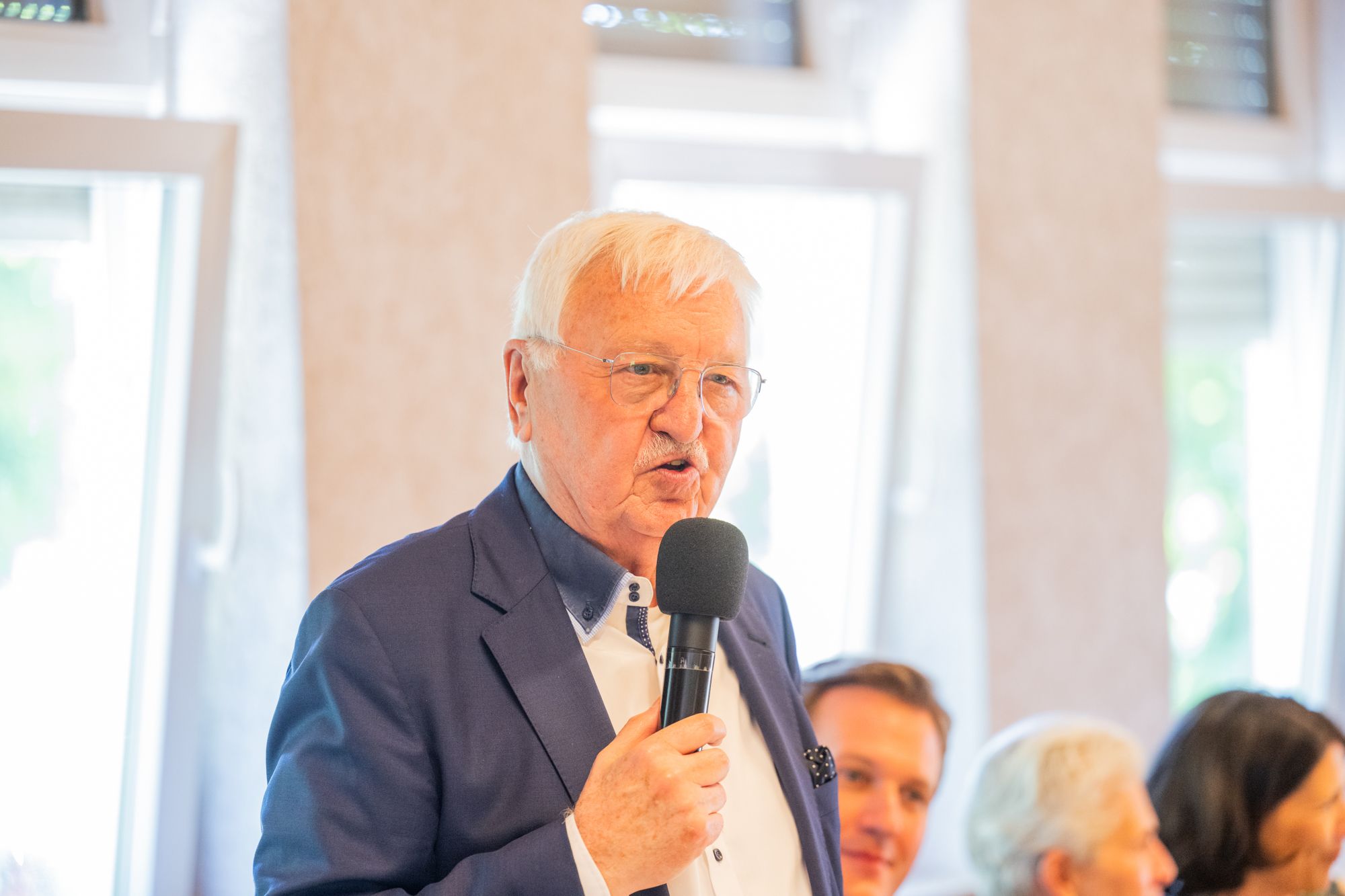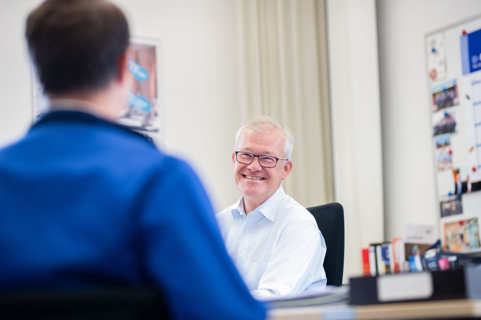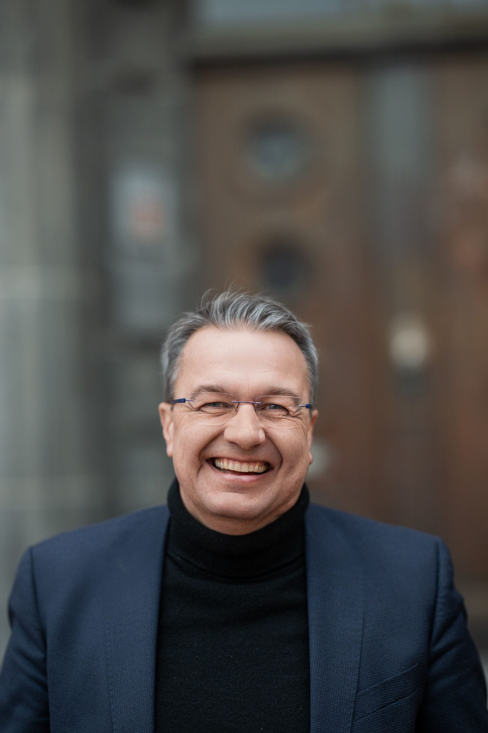 Älterer Mann in blauer Jacke lächelt freundlich.