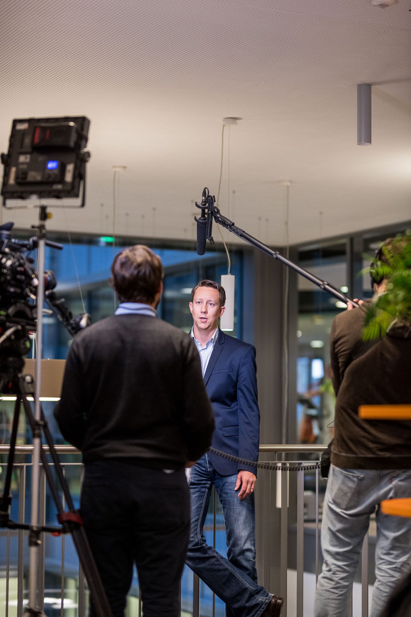 Dreh eines Interviews im Innenbereich mit Kameras