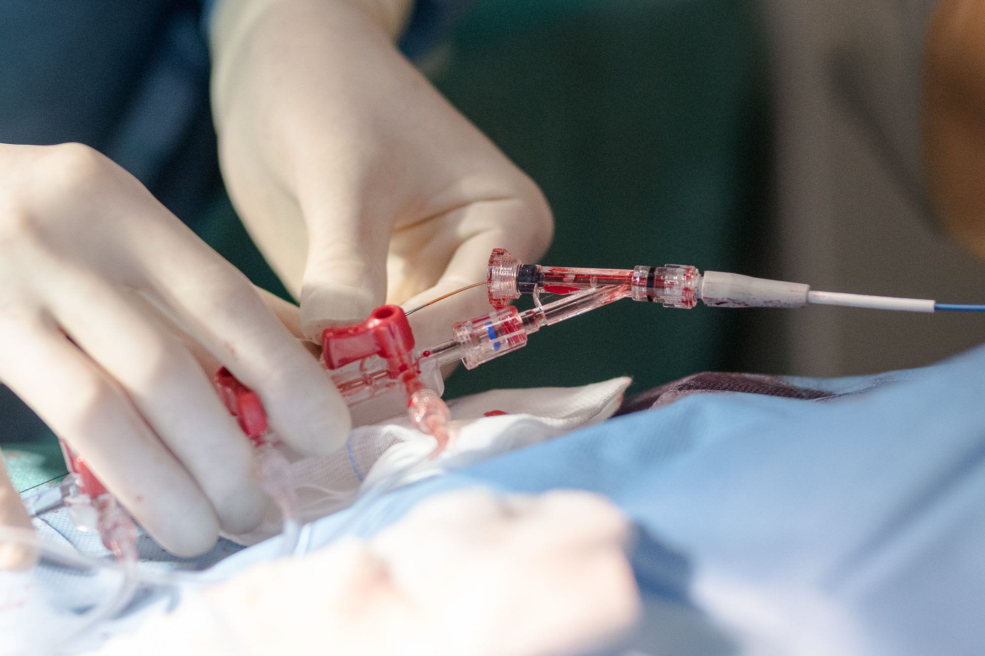 Chirurgische Hand hält medizinisches Gerät
