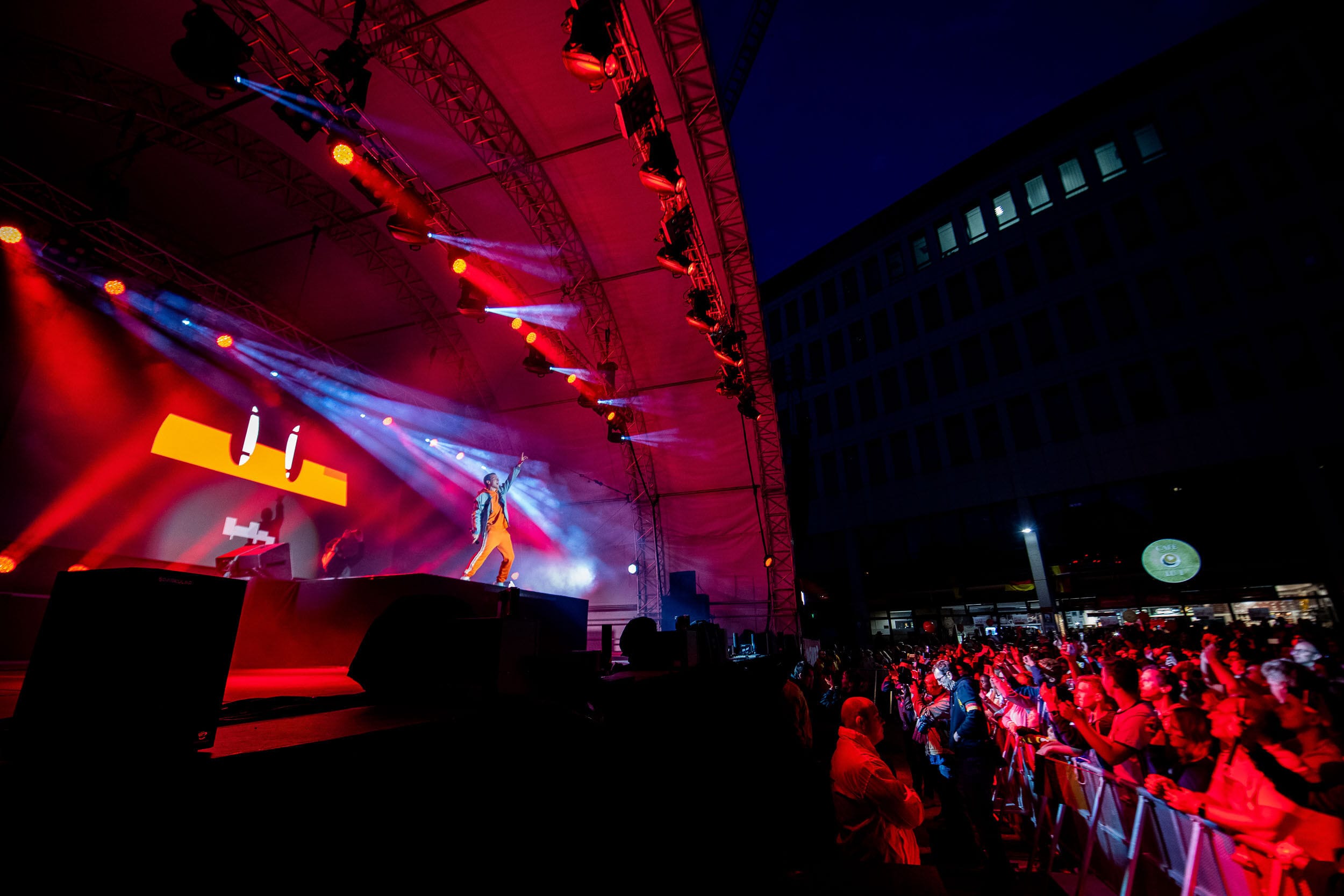 Konzert mit bunter Beleuchtung und Menschenmenge