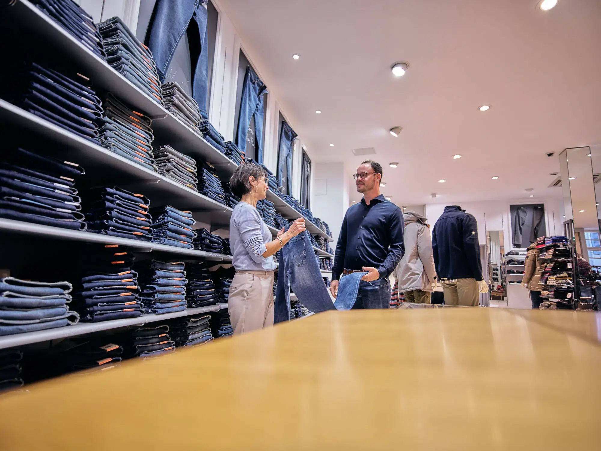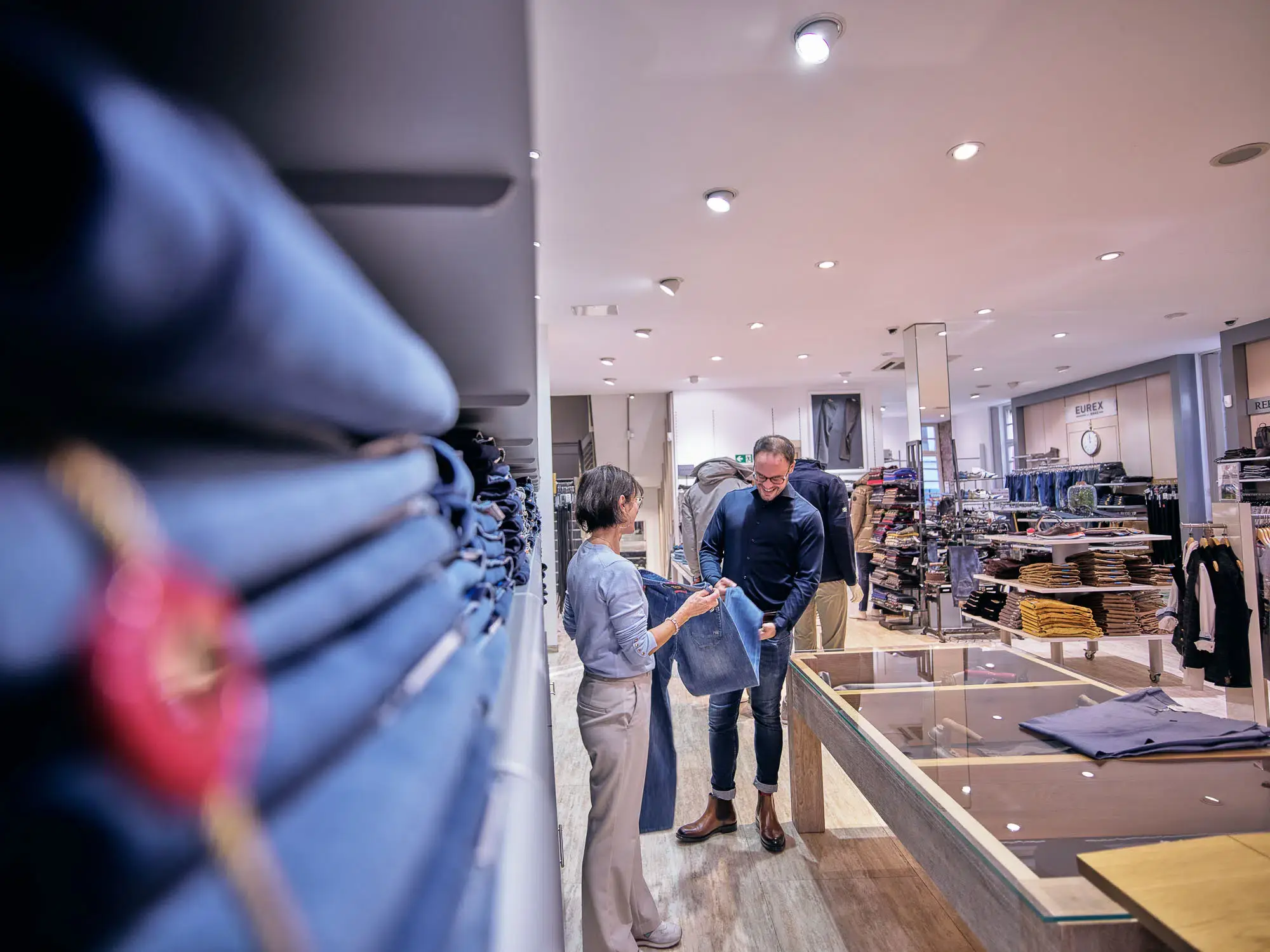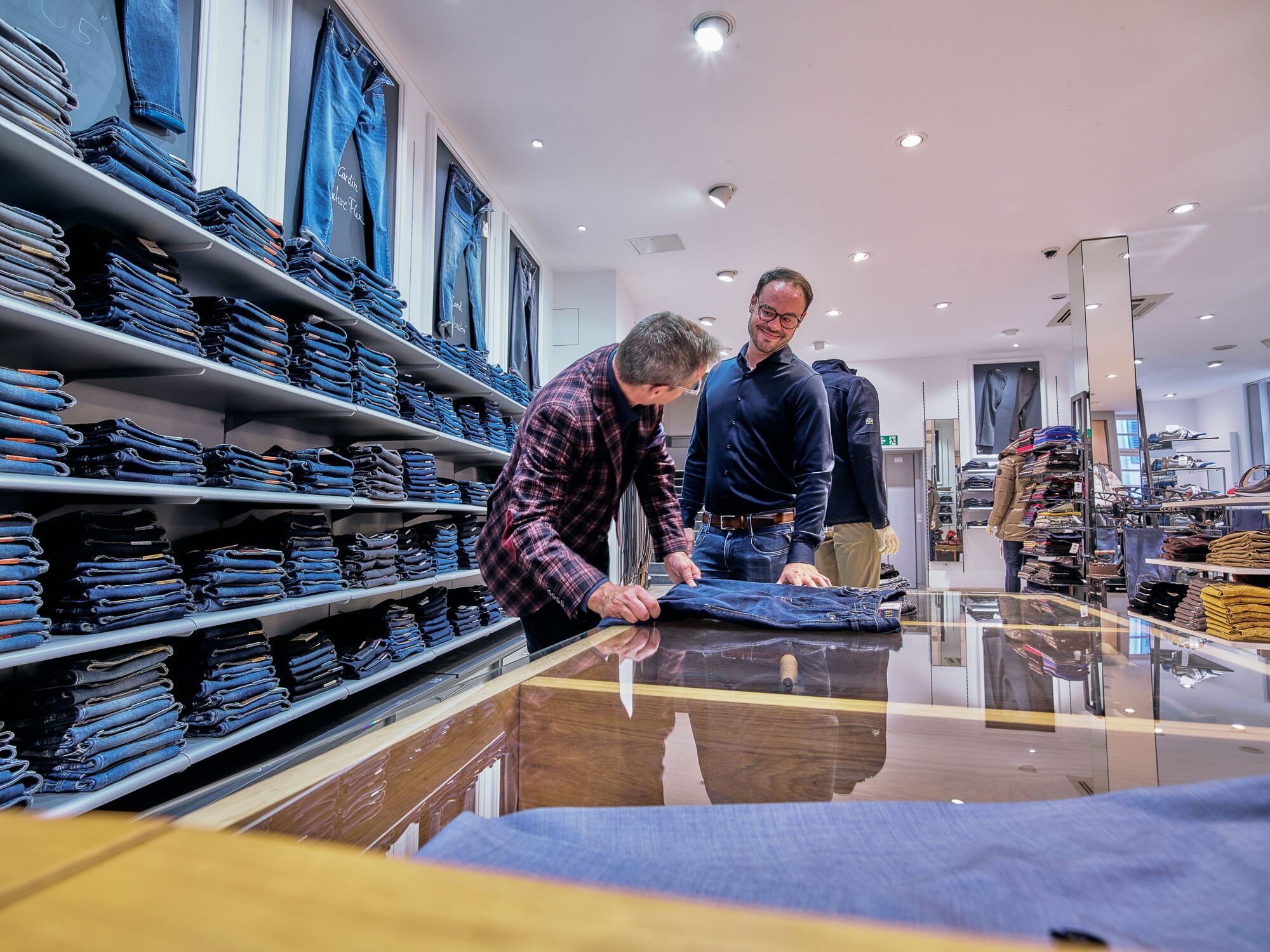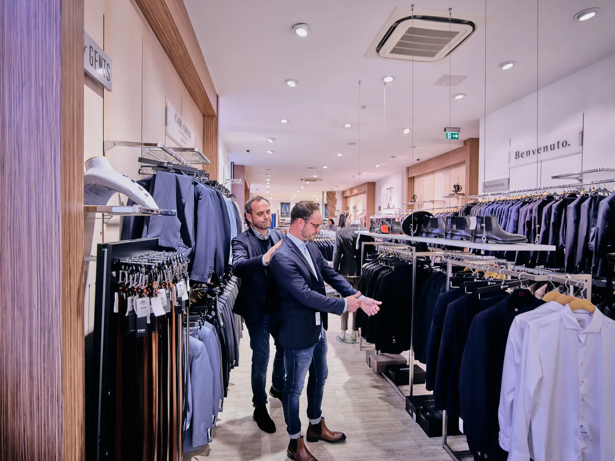 In diesem Modehaus steht Beratung noch an erster Stelle. Dank eines engagierten Teams und zahlreicher Mitarbeiter wird hier jeder Kunde mit der nötigen Zeit und Sorgfalt empfangen, um den perfekten Look zu kreieren. Hier wird das Einzigartige jedes Mannes erkannt und mit Mode zum Ausdruck gebracht.